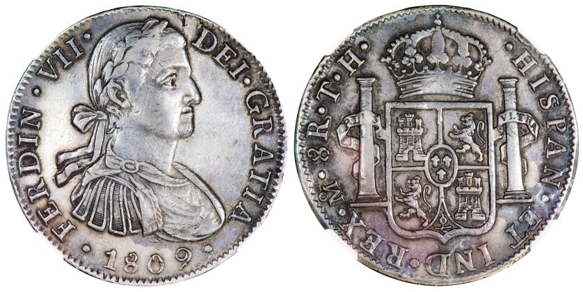 FERNANDO VII. 8 reales. 1809. México. TH. AR. VI-1083; AC-1308. Encapsulada NGC-XF 45. MBC/MBC+.