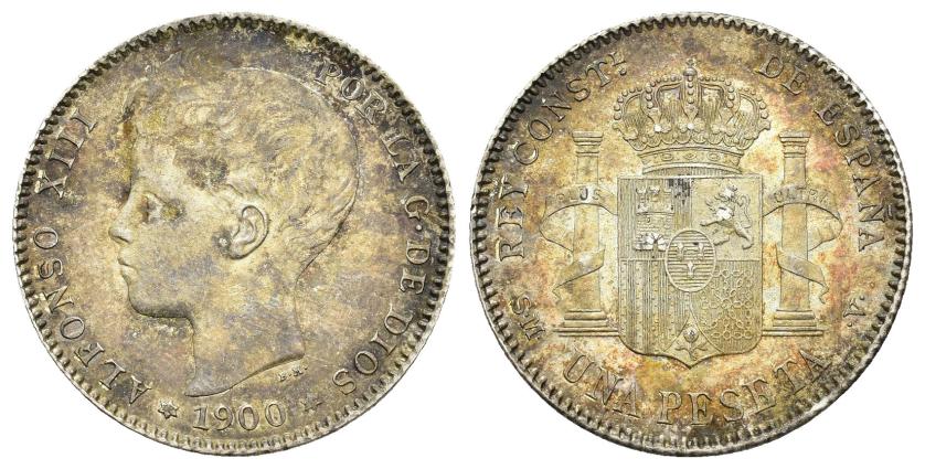 ALFONSO XIII. Peseta. 1900*19-00. Madrid. SMV. AR 4,97 g. 22,9 mm. VII-156; AC-59. Pátina gris. EBC+.