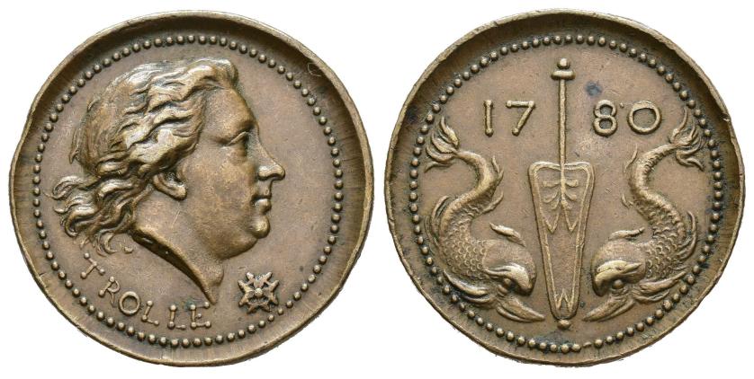 MONEDA EXTRANJERA. SUECIA. Medalla. Gustavo III. 1780. Al almirante Trolle. CU 14 g; 27,8 mm. Golpecitos en canto. MBC+.
