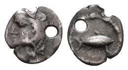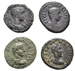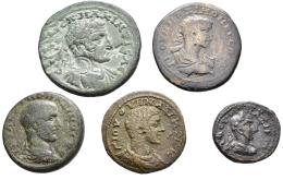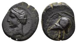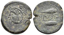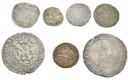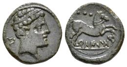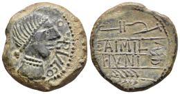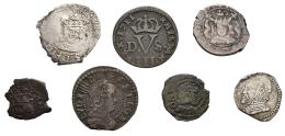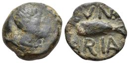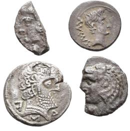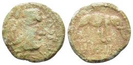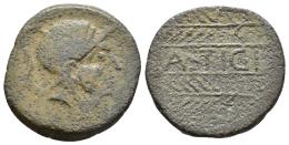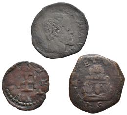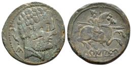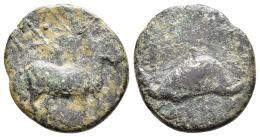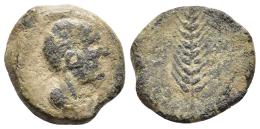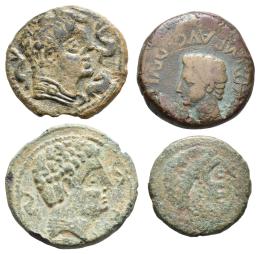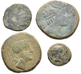 HISPANIA ANTIGUA. Lote de 8 piezas de la Ulterior y Bética: 2 plomos monetiformes, 4 cuadrantes (Nabrissa, Obulco, Osset e Italica), 1 semis serie jabalí-clava y un dupondio de Ebora de Augusto. RC/BC+.