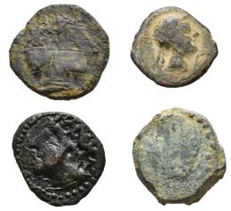 HISPANIA ANTIGUA. Lote de 4 piezas: Olontigi (2), y Castulo (2: mitad y cuadrante). BC/MBC.