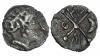 DIVISORES DE IMITACIÓN MASSALIOTA. Tritartemorion. A/ Cabeza femenina a der. R/ Rueda de cuatro radios; en los cuadrantes creciente, M, círculo y A. ACIP-490 vte. por diferente orden. MBC/MBC+. Rarísima.