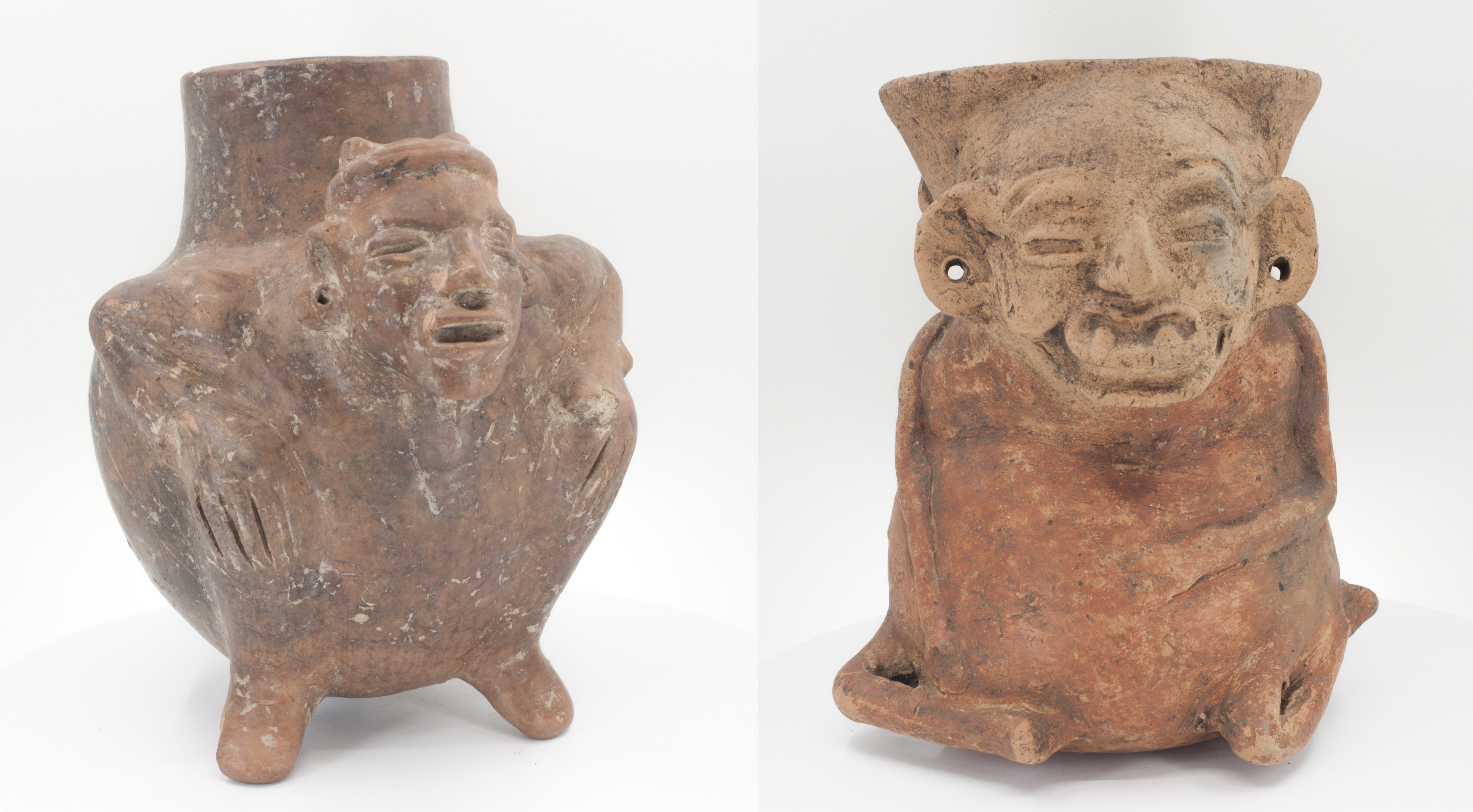 PREHISPÁNICO. Período Formativo Medio. Cerámica. Lote de dos vasijas antropomorfas. Pequeñas pérdidas en el borde. Altrua 17,4 y n18, 2 cm.