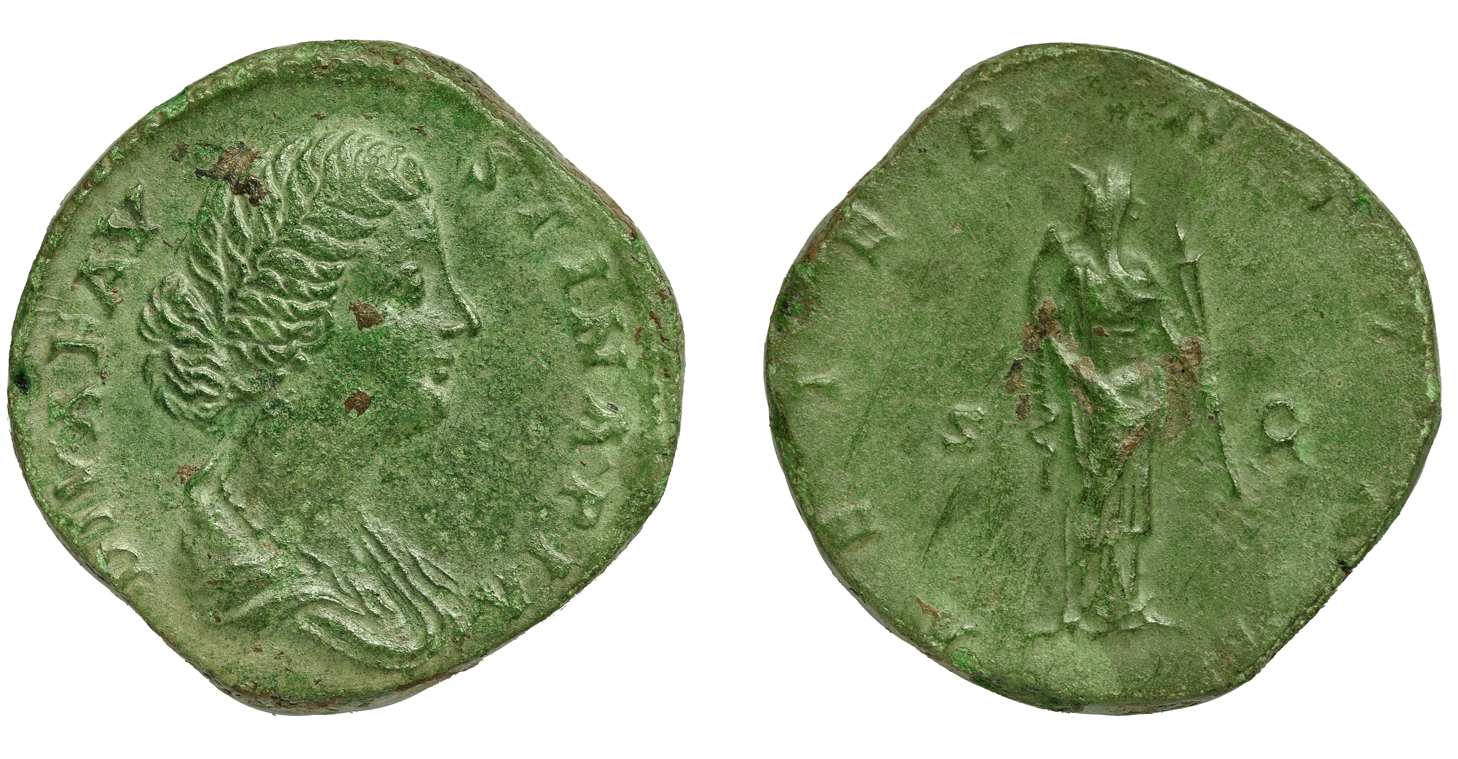 FAUSTINA LA MENOR. Sestercio. Roma (176-180). R/ Aeternitas con antorcha y sujetándose el velo; AETERNITAS, S-C. AE 19,56 g. 30,3 mm. RIC-1692. Pátina verde. MBC+/MBC.