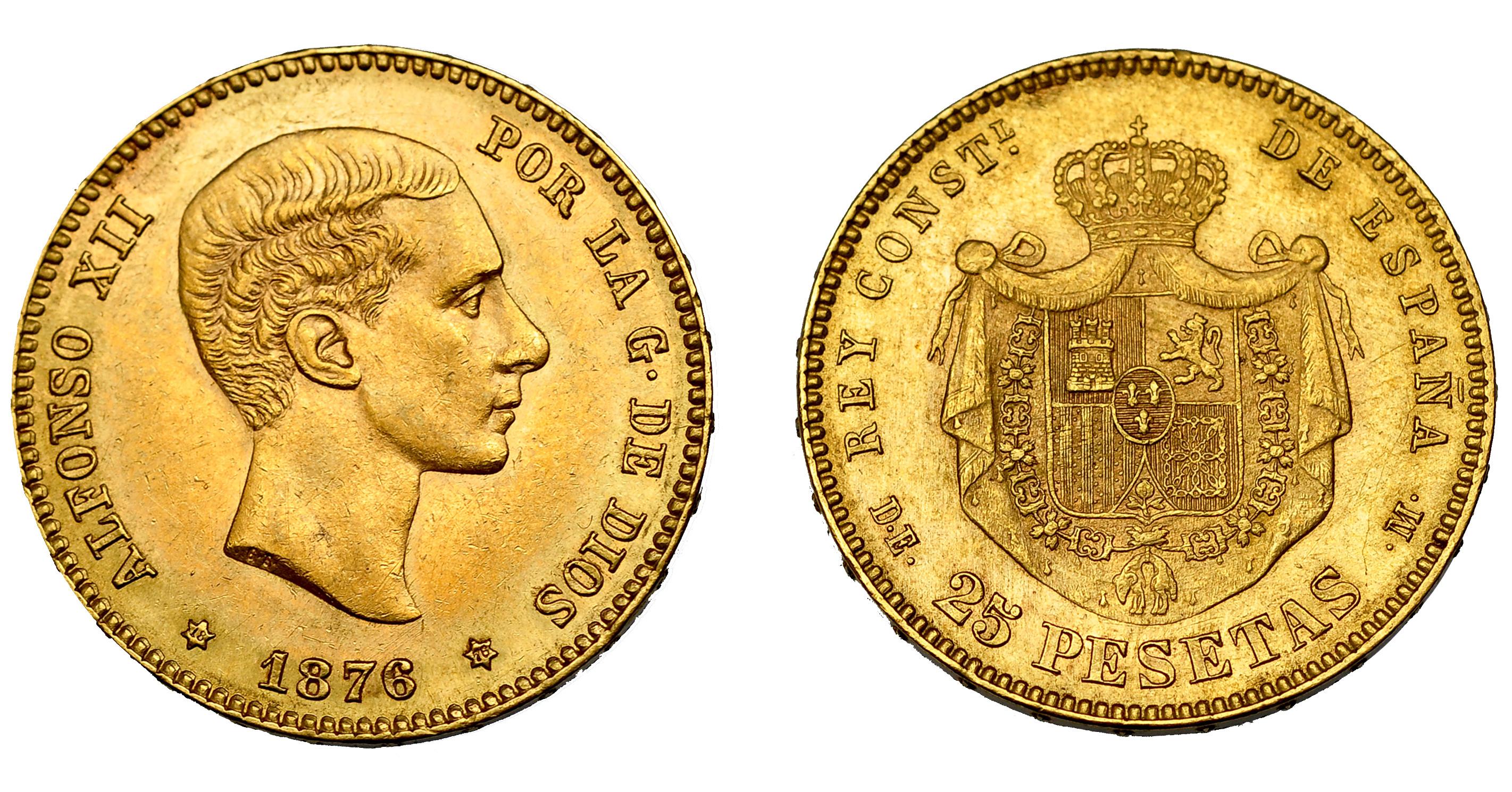 ALFONSO XII. 25 pesetas. 1876 *18-76.. Madrid. DEM. VII-103. EBC-.