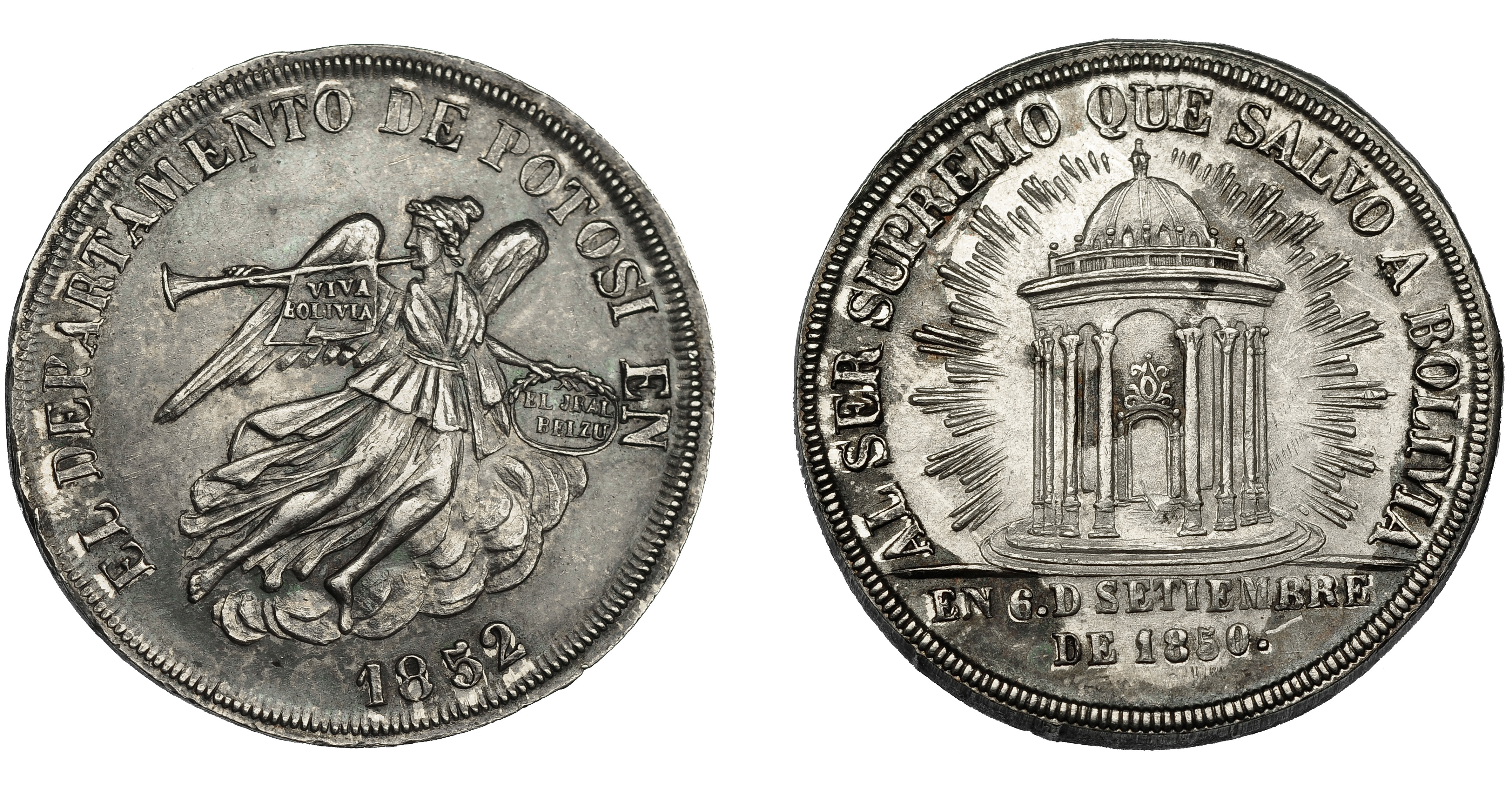 MONEDAS EXTRANJERAS. BOLIVIA. Medalla. "Al ser supremo que salvó a Bolivia. El departamento de Potosí". AR-36 mm. Rayas en rev. EBC+.