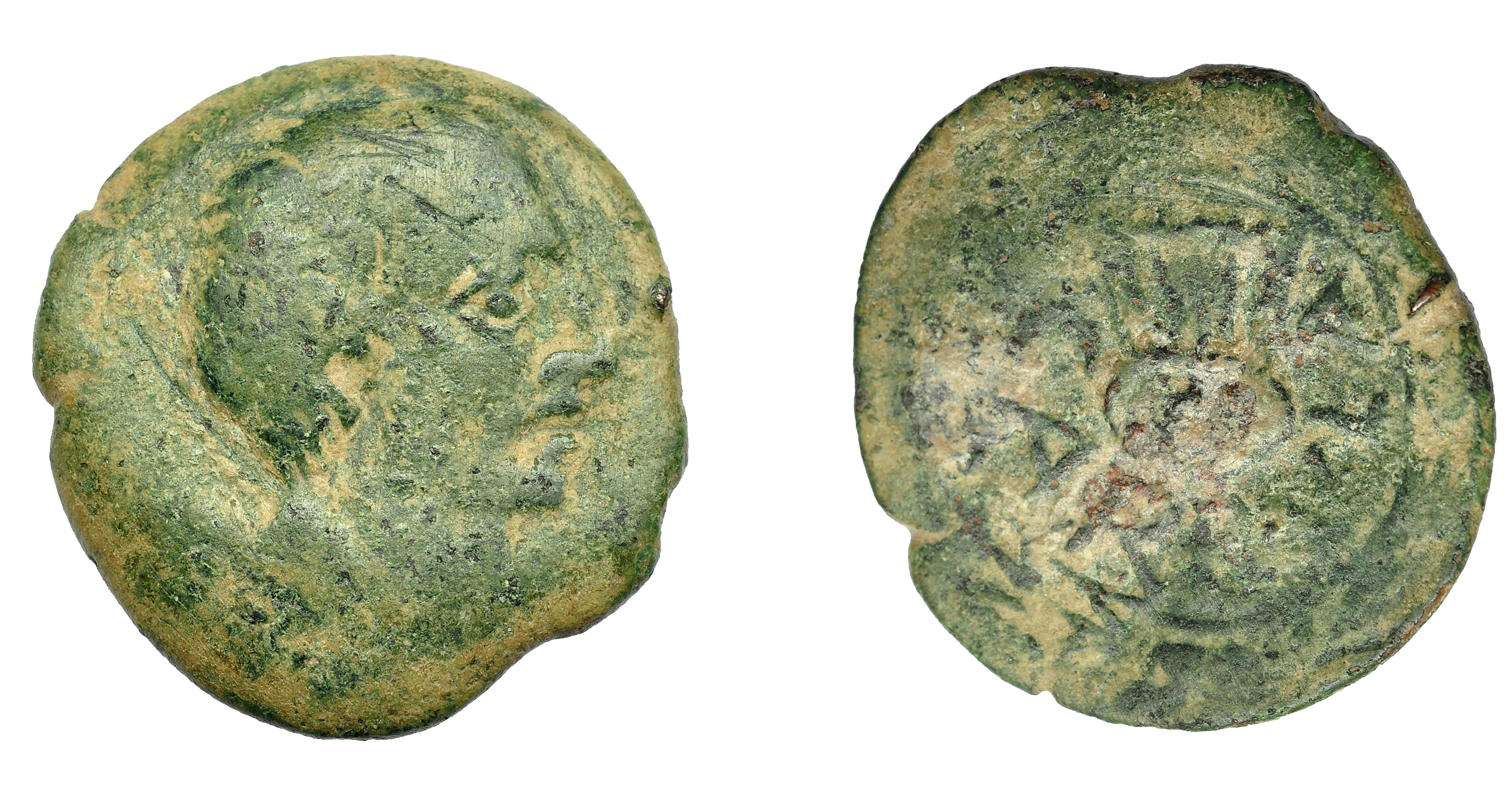 HISPANIA ANTIGUA. CARBULA. Unidad o duplo. A/ Cabeza masculina a der., delante signo serpentiforme. R/ Lira, alrededor CARBVLA, todo dentro de láurea. AE 14,26 g. 28,4 mm. I-439 vte. ACIP-2311. Pátina verde. BC+. Rara. Ex Áureo, 21-10-1997, lote 808.