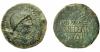 HISPANIA ANTIGUA. OBULCO. AS. A/ Cabeza femenina con moño a der., debajo creciente, delante OBVLCO, todo dentro de láurea. R/ Arado y espiga a izq., debajo en dos líneas SIBiBoLAI/URKaIL. AE 25,8 g. 34,74 mm. I-1779. ACIP-2185. Pátina veerde oscuro. MBc-/BC+. Ex Arcanos, 1-12-1993.