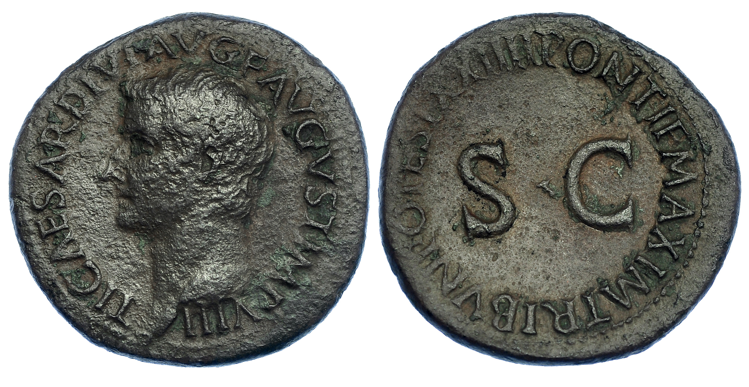 TIBERIO. As. Roma (21-22). R/ SC, alrededor PONTIF MAXIM TRIBVN POTEST XXIII. RIC-44. Leves erosiones. MBC-/MBC. Escasa.