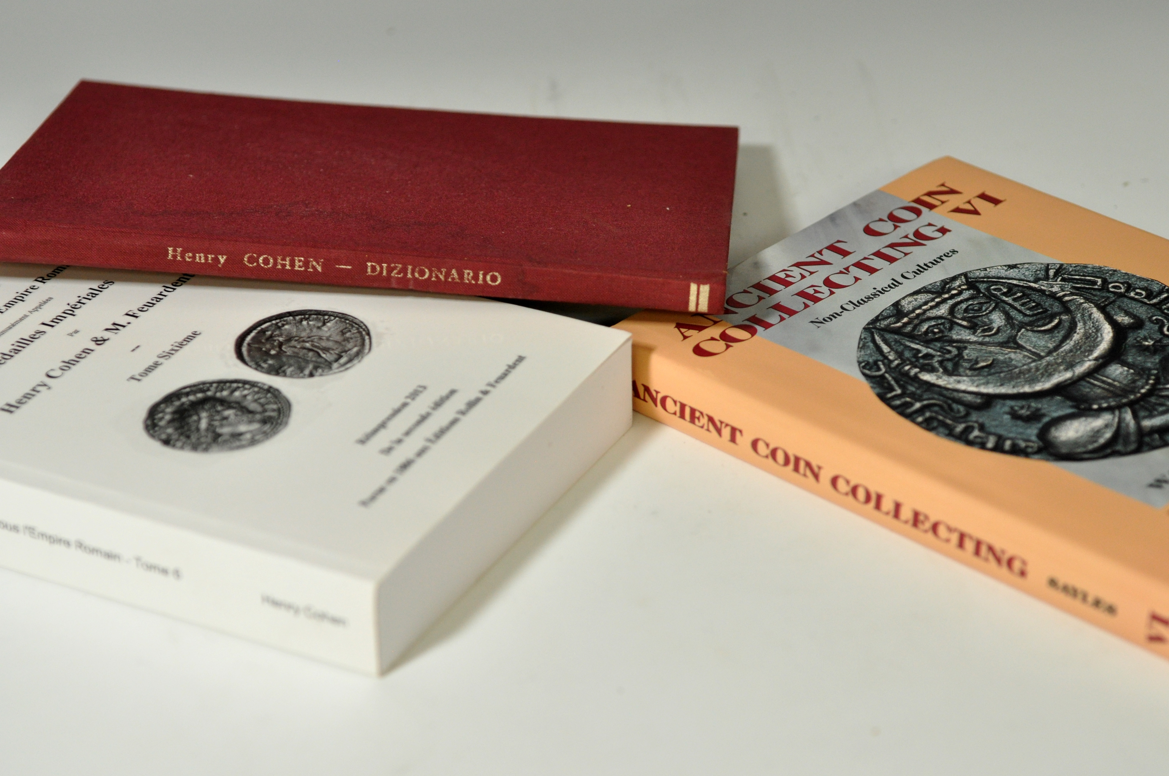 Lote 3 libros: H. Cohen, Description Historique Des Monnaies Frappées sous l’Empire Romain, vol. VI, reimpr. 2013, tapa blanda; Dizionario relative all’opera di Henry Cohen Les monnaies de l’Empire Romain. Francese-Italiano-Inglese-Tedesco-Spagnolo, Arnaldo Forni Editore, Bolonia, 1979, y W. G. Sayles, Ancient coin collecting VI. Non-Classical Cultures, ed. Krause, 1999.