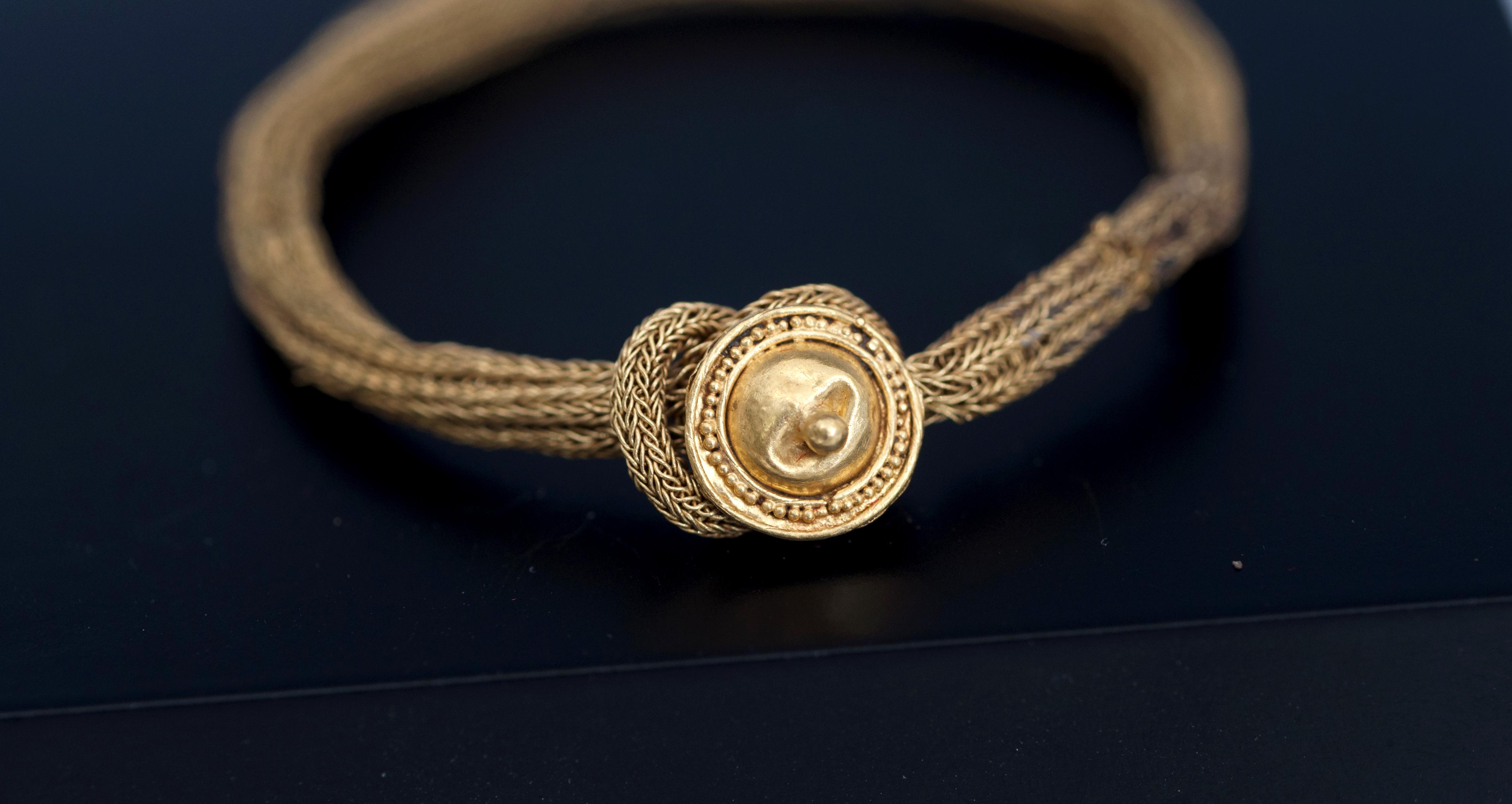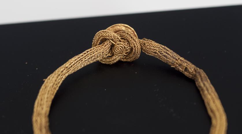 ROMA. Imperio Romano. Pulsera (I-III d.C.). Oro. Formada con el nodus herculeus y retocada con un aplique circular. Diámetro interior 39 mm.