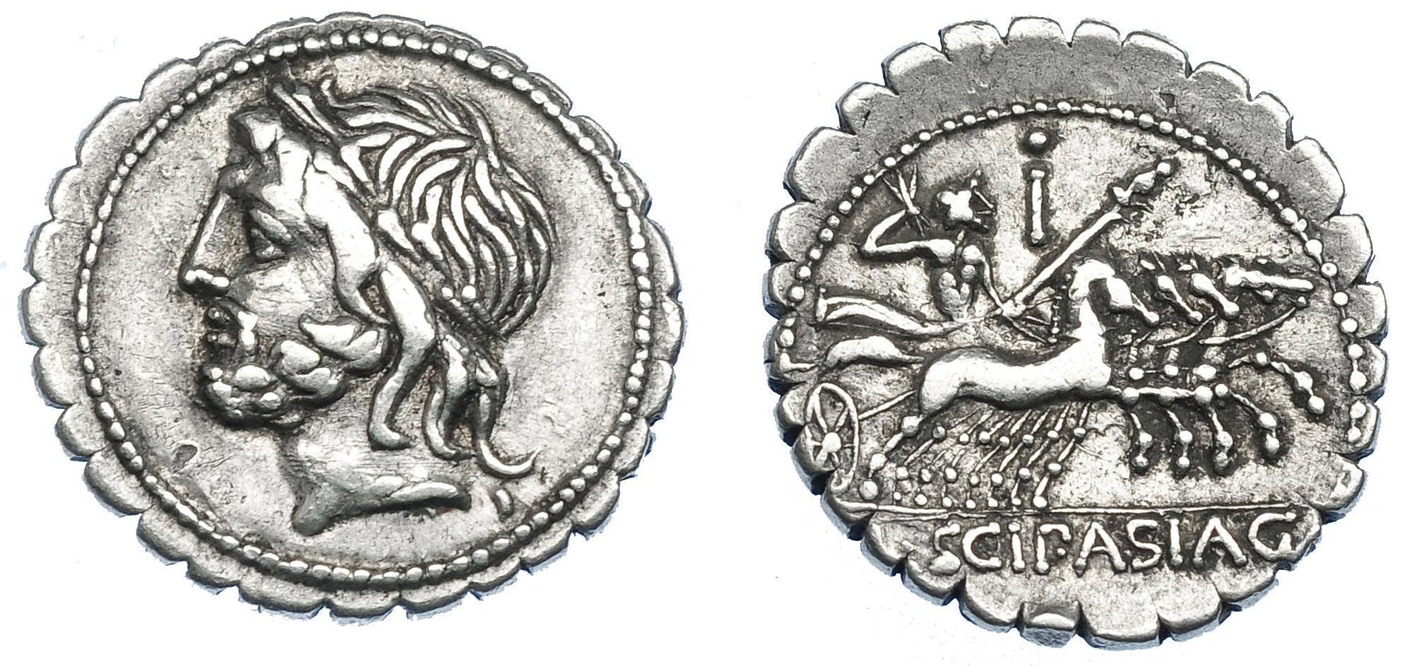REPÚBLICA ROMANA. CORNELIA. Denario. Roma (106 a.C.). R/ Encima de la cuadriga letra I con glóbulo encima. AR 3,98 g. 18,6 mm. CRAW-311.1c. FFC-612. MBC.