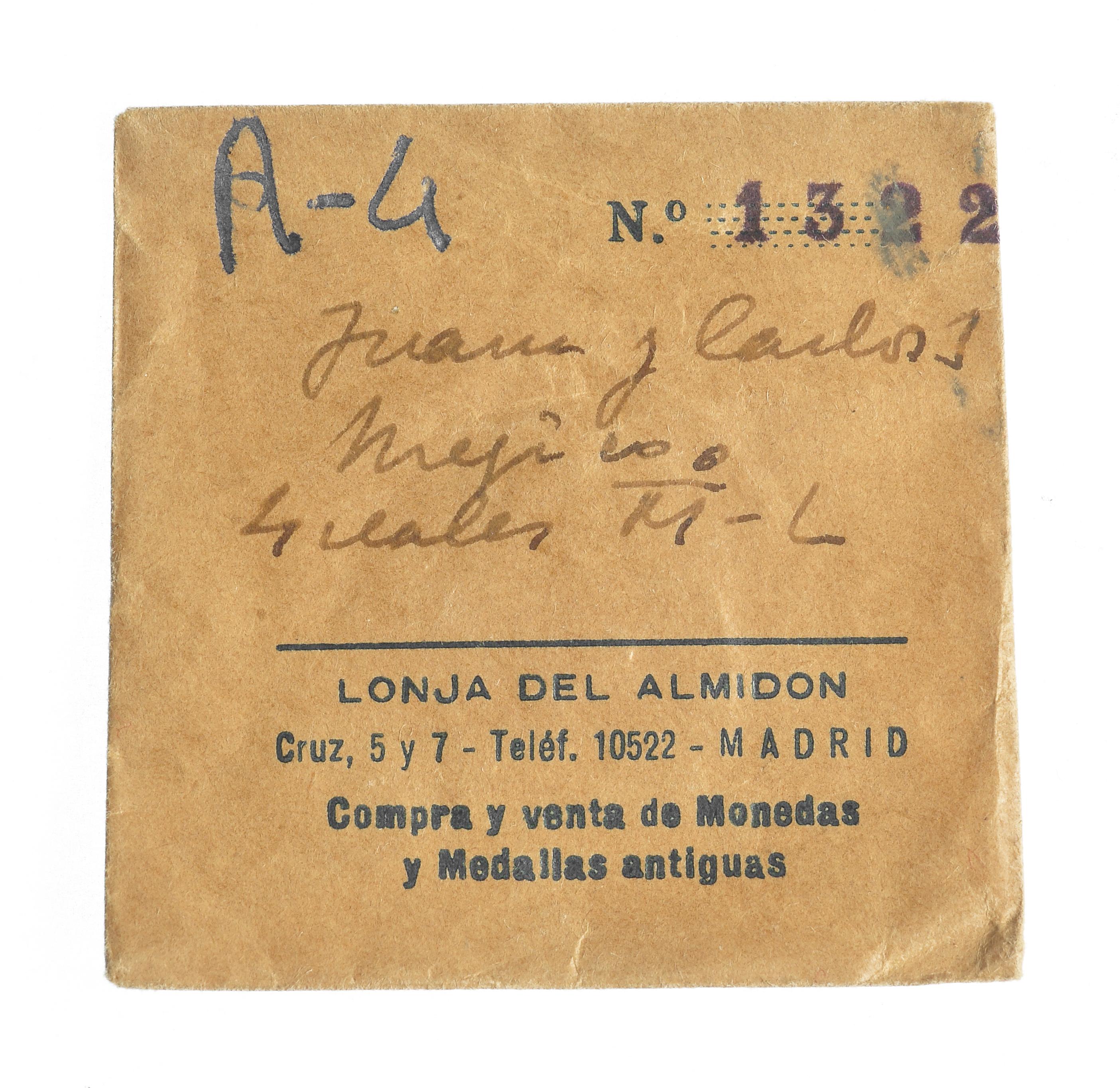 JUANA Y CARLOS. 4 reales. México. Mº-L. AC-135. MBC+. Venta privada en La Lonja del Almidón. Conserva sobre original.