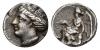 GRECIA ANTIGUA. BRUTTIUM. Terina. Sexto (ss. V-IV a.C.). A/ Cabeza de Terina a izq. R/ Nike sentada sobre cipo a izq. con ¿corona? AR 1,21 g. 10,86 mm. COP-2021. SBG-509? Pequeñas marcas. MBC/MBC-. Ex colección Guadán, 1543.