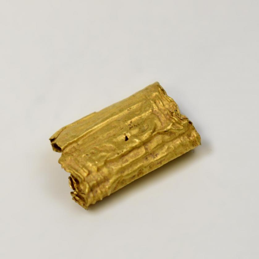 MUNDO ANTIGUO. Greco-romano. Fragmento hueco (ss. VI-V a.C.). Oro. Longitud 18mm.