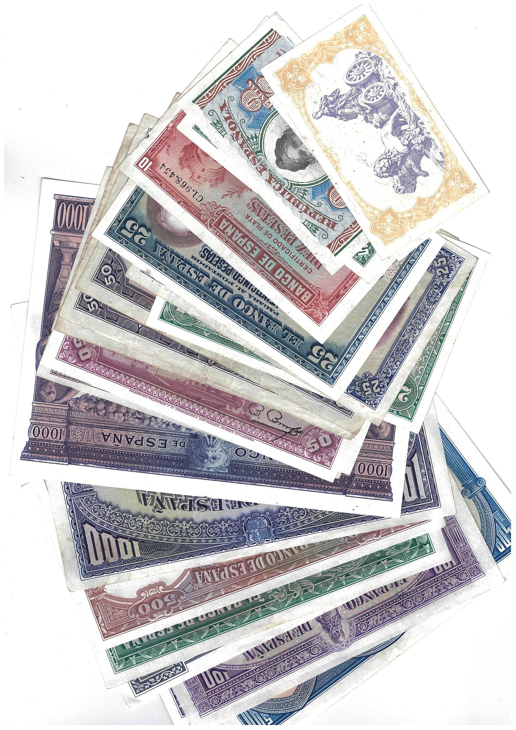 BILLETES ESPAÑOLES. Lote de 22 billetes de 1925 a 1935: 100 pts. (2), 500 pts. (3), 100 pts. (3), 50 pts. (6), 25 pts. (3), otros (5). Casi todos MBC a EBC-.