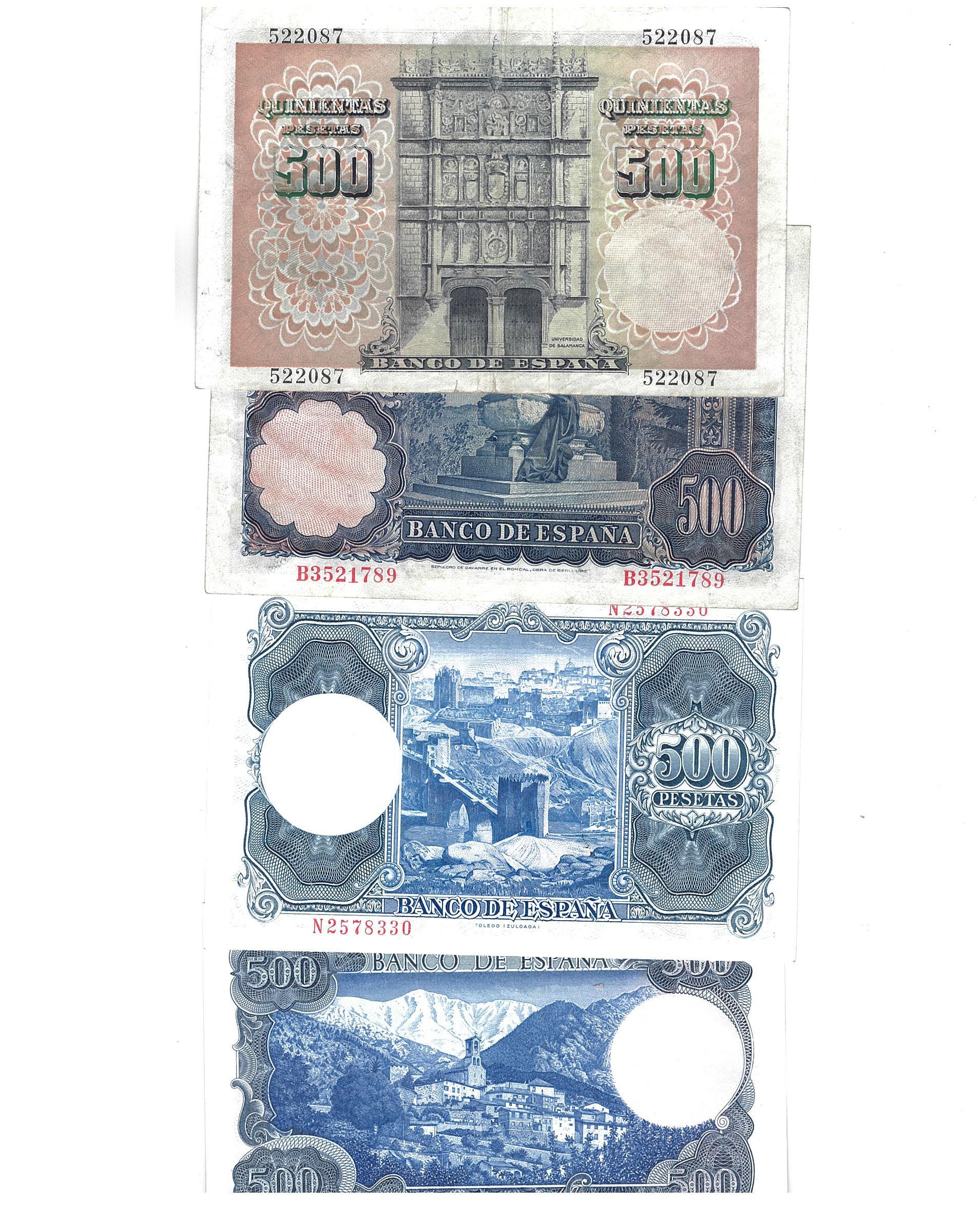 BILLETES ESPAÑOLES. Lote de 4 billetes de 500 pts. 1946-1971. ED-D 53 BC+; 61a BC+; 69b SC y 74 SC sin serie.