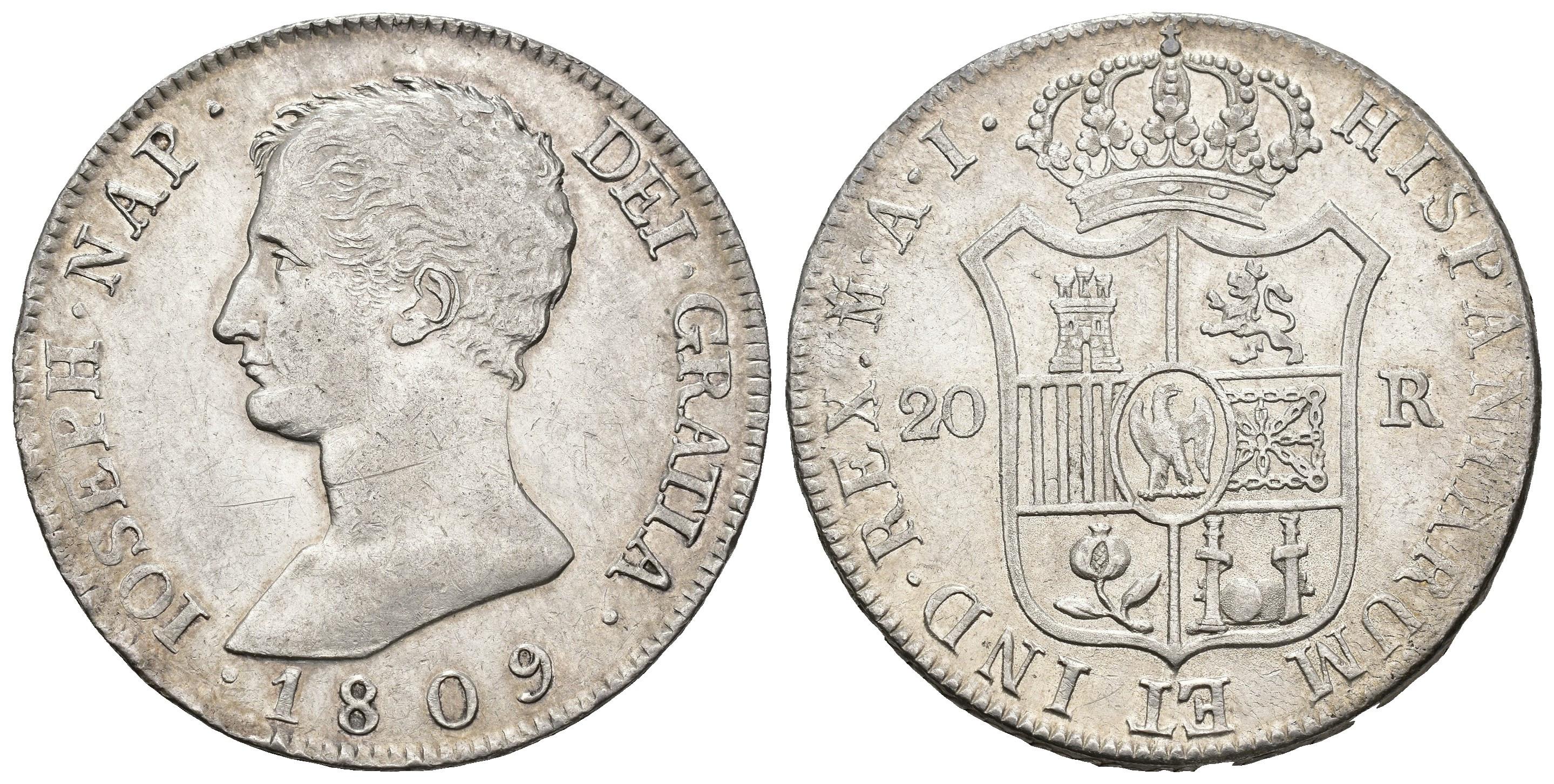 JOSÉ I BONAPARTE. 20 reales. 1809. Madrid. AI. AR 26,96 g. 39,6 mm. VI-30. MBC+.
