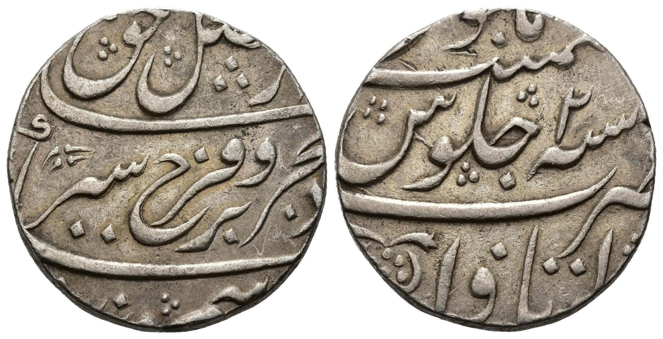 MOGOLES. YILAL AL-DIN FARRUJSIYYAR B. MUHAMMAD 'AZIM (1124-1131/1713-1719). Rupia. Itawa. 1125 H. AR 11,43 g. 23 mm. KM#377.34a. EBC-.
