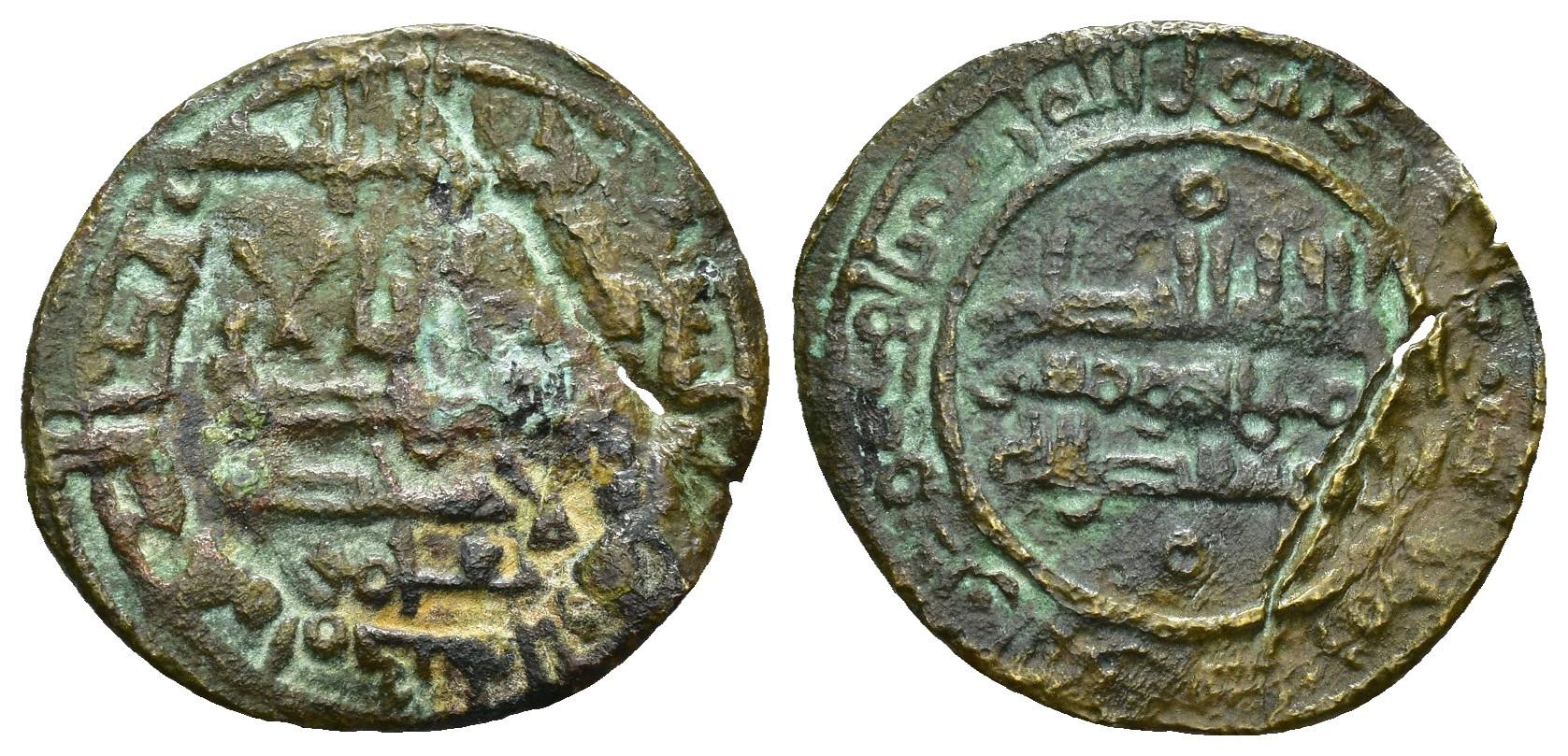 CALIFATO. AL-HAKAM II (961-976). Dírham. Medina al-Zahra. 359 H. CU 2,36 g. 22 mm. Cobre tipo V-460. Falsa de época. Rayas. MBC-.