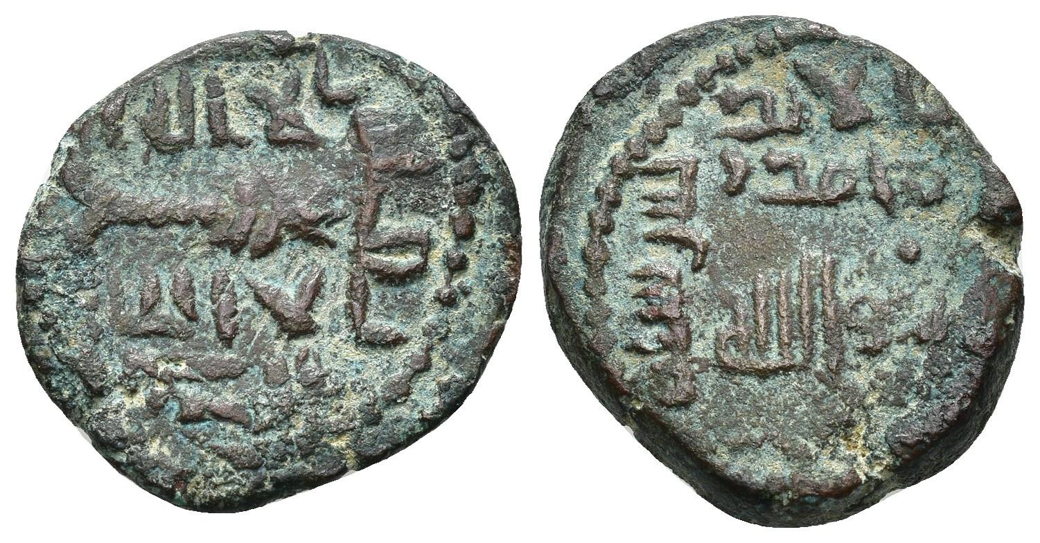 CONQUISTA/GOBERNADORES. Felús. Al-Andalus. 110 H. CU 5,39 g. 20 mm. F XIX-d. Pátina verde oscuro. MBC.