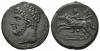 COLECCIÓN CORES. REYES NÚMIDAS Y MAURETANOS. SYFAX. Unidad. ¿Siga? (c. 214-203). A/ Cabeza del rey diademada a izq. R/ Jinete con clámide galopando a izq., deb. glóbulo y ley. púnica en cartela spq hmmlkt. AE 9,96 g. 25 mm. COP-491; MAA-6a; CC-5675, mismo ejemplar. Golpecito en anv. Pátina oscura. MBC+.