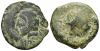 COLECCIÓN CORES. MAURETANIA ORIENTAL. Cartenna. A/ Cabeza masculina con barba a izq., delante palma; A POMP MI retrógrada. R/ Cabeza femenina diademada a der,, delante C AL POMP M F VIC Q AFC KAR. AE 20,86 g. 30 mm. RPC-885; CC-5992, mismo ejemplar. Pátina verde. BC. Rarísima.