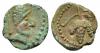 COLECCIÓN CORES. MAURETANIA OCCIDENTAL. Sexto. Lixus. A/ Cabeza masculina a der. con bonete cónico con colgante detrás. R/ Racimo; sin ley. AE 1,82 g. 13 mm. Call.&Rip.-I.5 o 6; CC-6238, mismo ejemplar. Pátina verde. MBC.