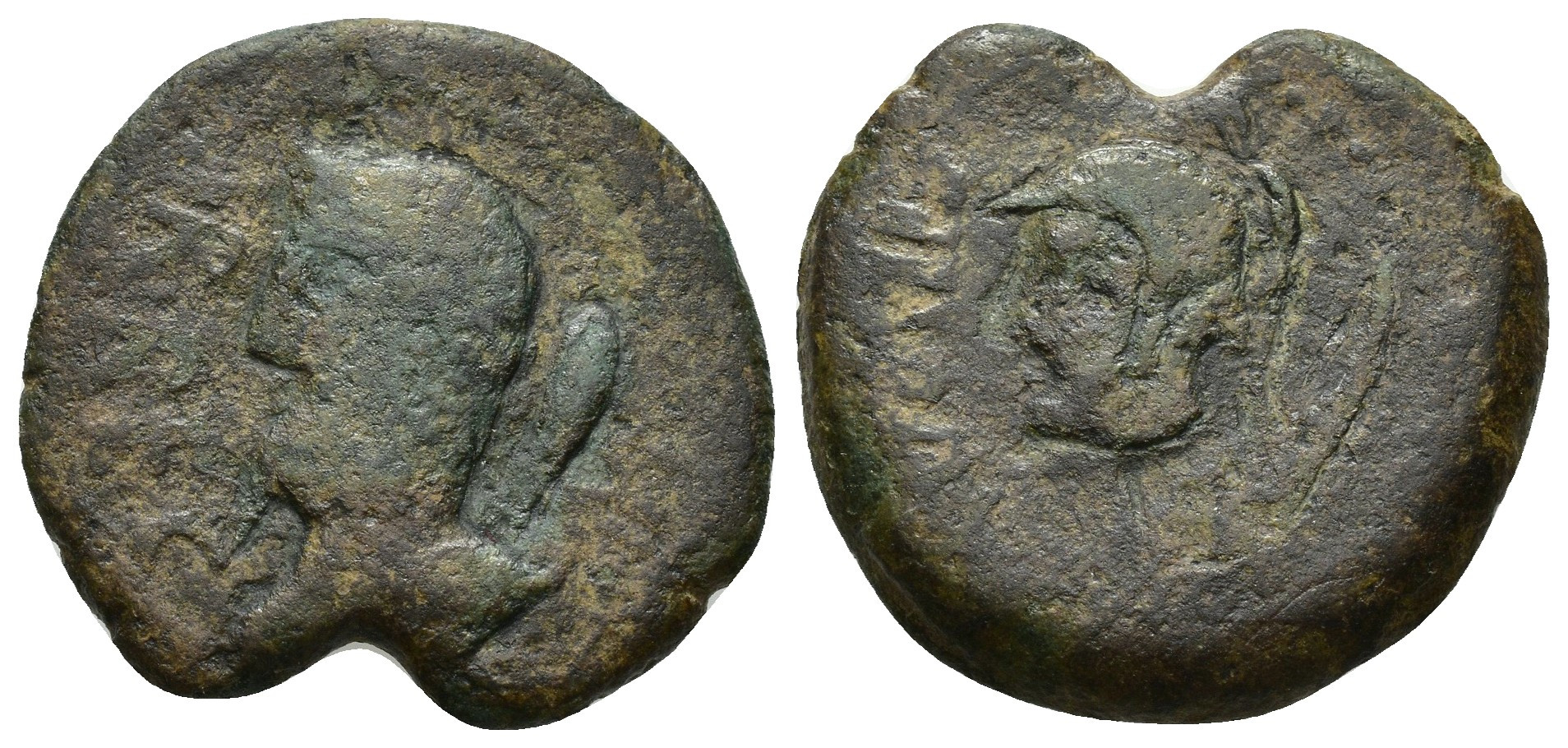 COLECCIÓN CORES. MAURETANIA OCCIDENTAL. ¿As? ¿Banasa? ¿Volubilis? A/ Cabeza de Melkart a izq., detrás clava, delante VIR REC. R/ Cabeza femenina con casco y cetro a izq., delante IIII VIR AV (poco visible). AE 9,92 g. 26 mm. COP-755; RPC-870; MAA-186; CC-6317, mismo ejemplar. Relieves repasados. BC.