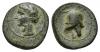 HISPANIA ANTIGUA. EMISIONES HISPANO-CARTAGINESAS. Quinto. A/ Cabeza femenina con tocado vegetal a izq. R/ Casco a izq. AE 1,69 g. 13,2 mm. I-521; ACIP-582. Pátina verde rugosa. MBC/MBC+.