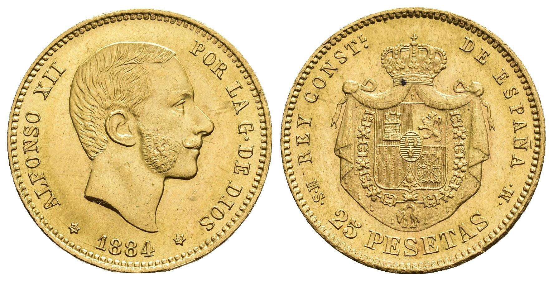 ALFONSO XII. 25 pesetas. 1884*18-84. Madrid. MSM. AU 8,08 g. 24 mm. VII-113. R.B.O. EBC+.