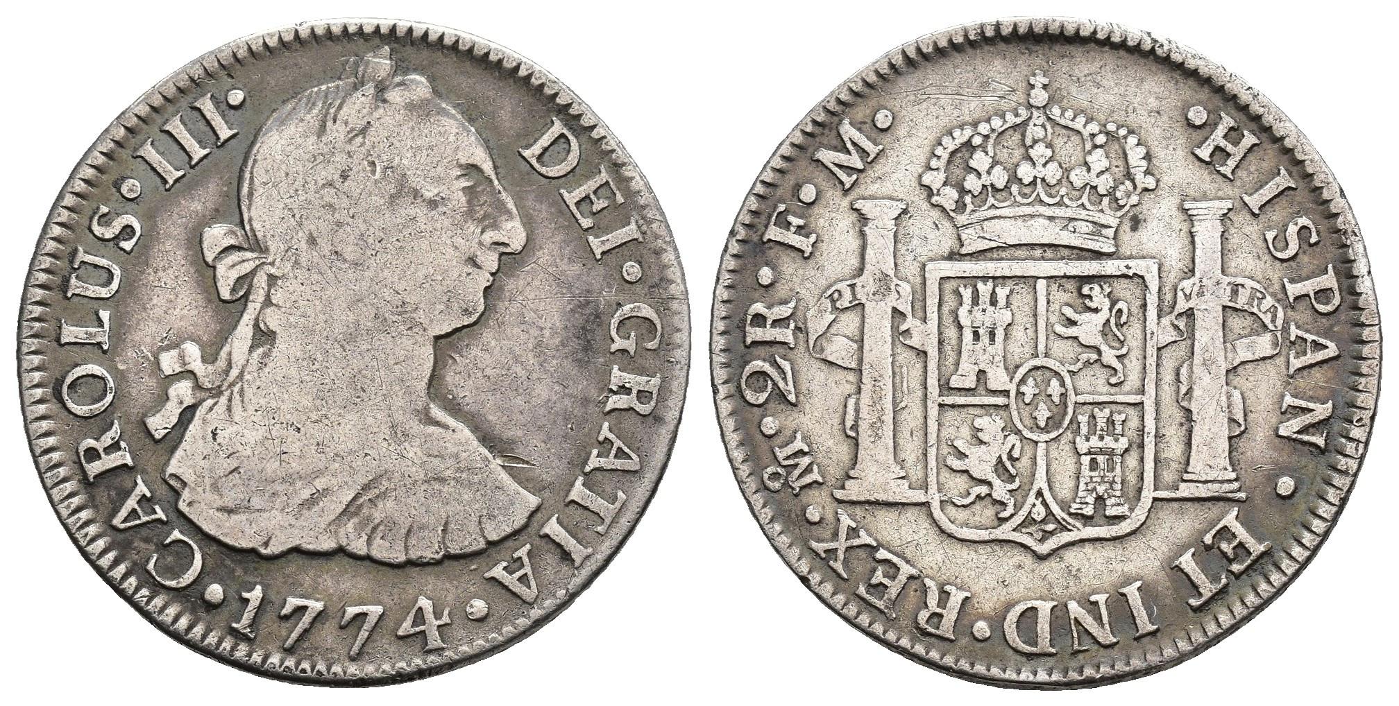CARLOS III. 2 reales. 1774. México. FM. AR 6,39 g. 27,5 mm. VI-568. Rayita en rev. BC+/MBC-.