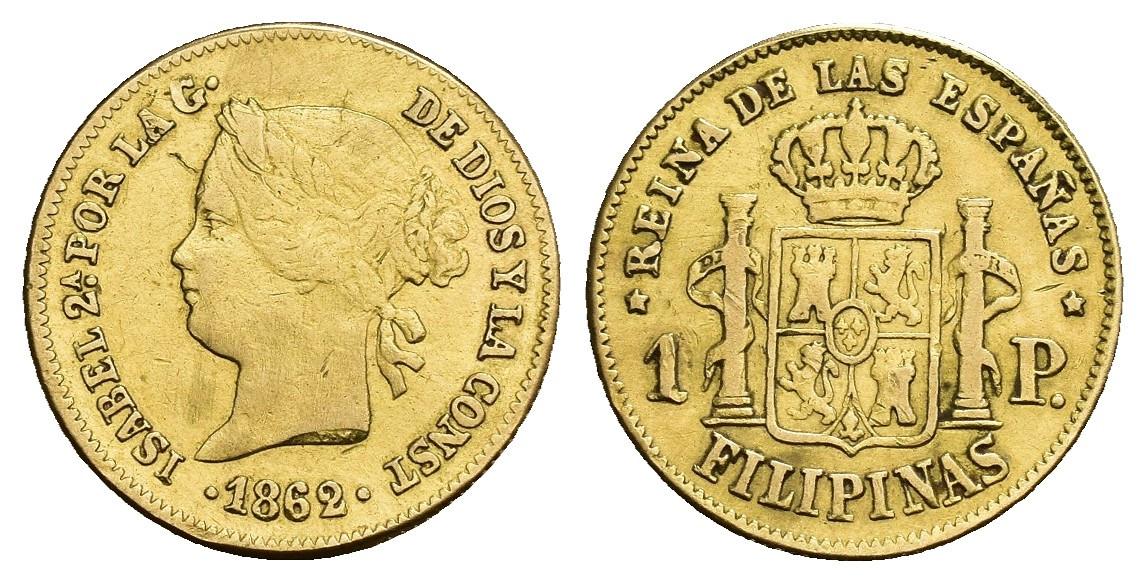 ISABEL II. Peso. 1862. Manila. AU 1,62 g. 15,3 mm. VI-672. Rayita em anv. MBC-.