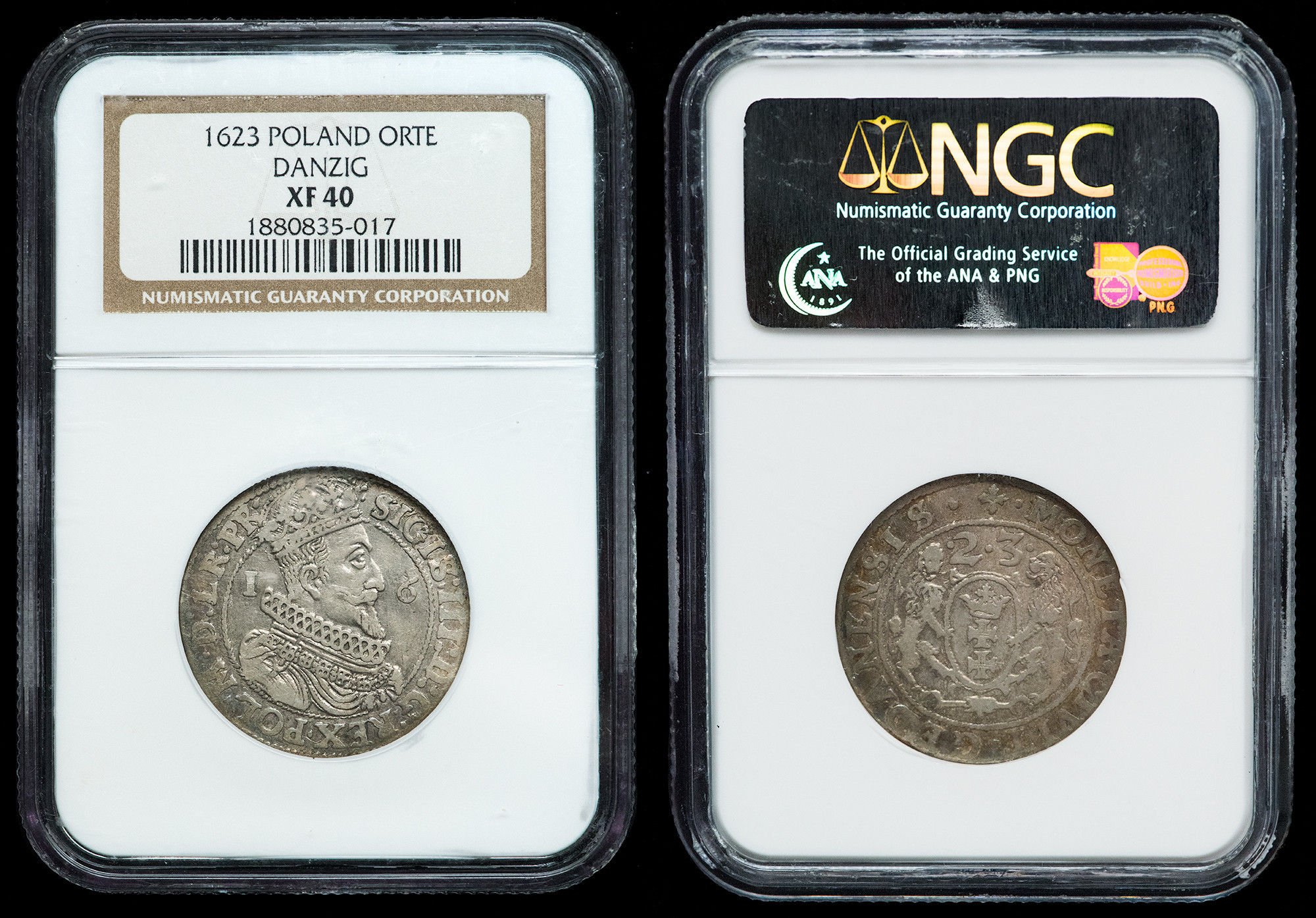 POLONIA. Segismundo III. Ori. 1923. Danzig. g. mm. KM-15.2. Encapsulada NGC-XF 40. MBC.
