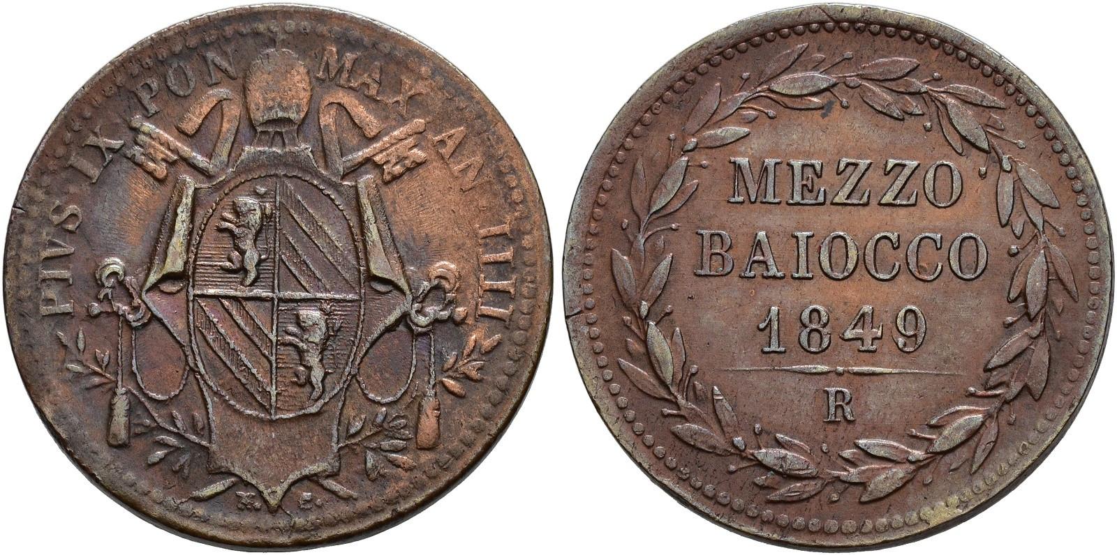 VATICANO-ESTADOS PAPALES. Pío IX. Meio baiocco. 1849. R. AR 4,61 g. 23,5 mm. KM-1340. EBC-.