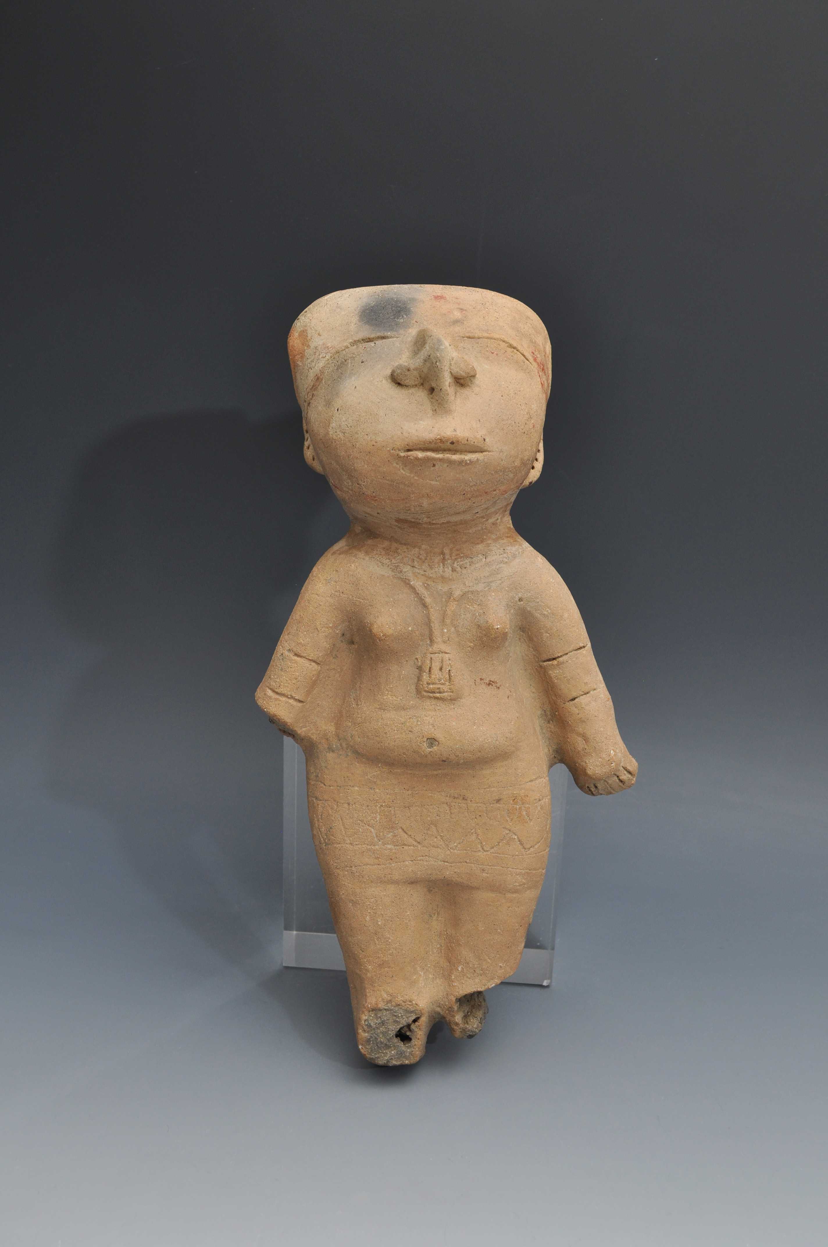 ARQUEOLOGÍA. PREHISPÁNICO. Región andina. Figura femenina (500 a.C.-500 d.C.). Cerámica. Altura 29 cm. Presenta faltas. Etiqueta de catalogación antigua en su espalda.
