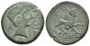 HISPANIA ANTIGUA. URSONE. Unidad. A/ Cabeza masculina diademada y con ínfulas a der., delante VRSONE. R/ Esfinge avanzando a der., en exergo L AP DEC Q. AE 13,32 g. 29,3 mm. I-2500; ACIP-2326. Pequeña grieta. Pátina verde. MBC-.