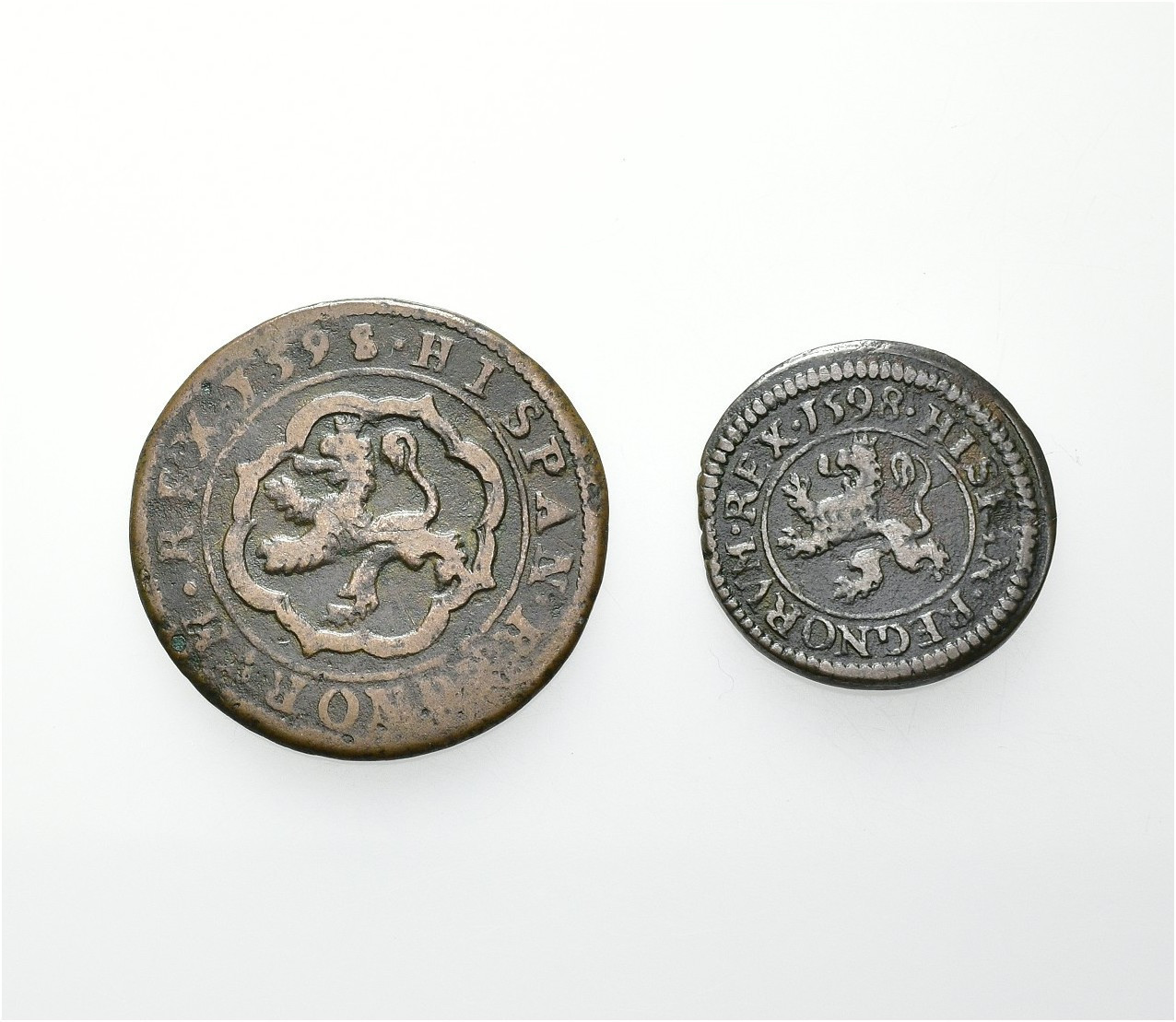 FELIPE II. Lote de 2 piezas: 2 y 4 mrs. 1598 Segovia. AC-87 y 91. BC+/MBC.