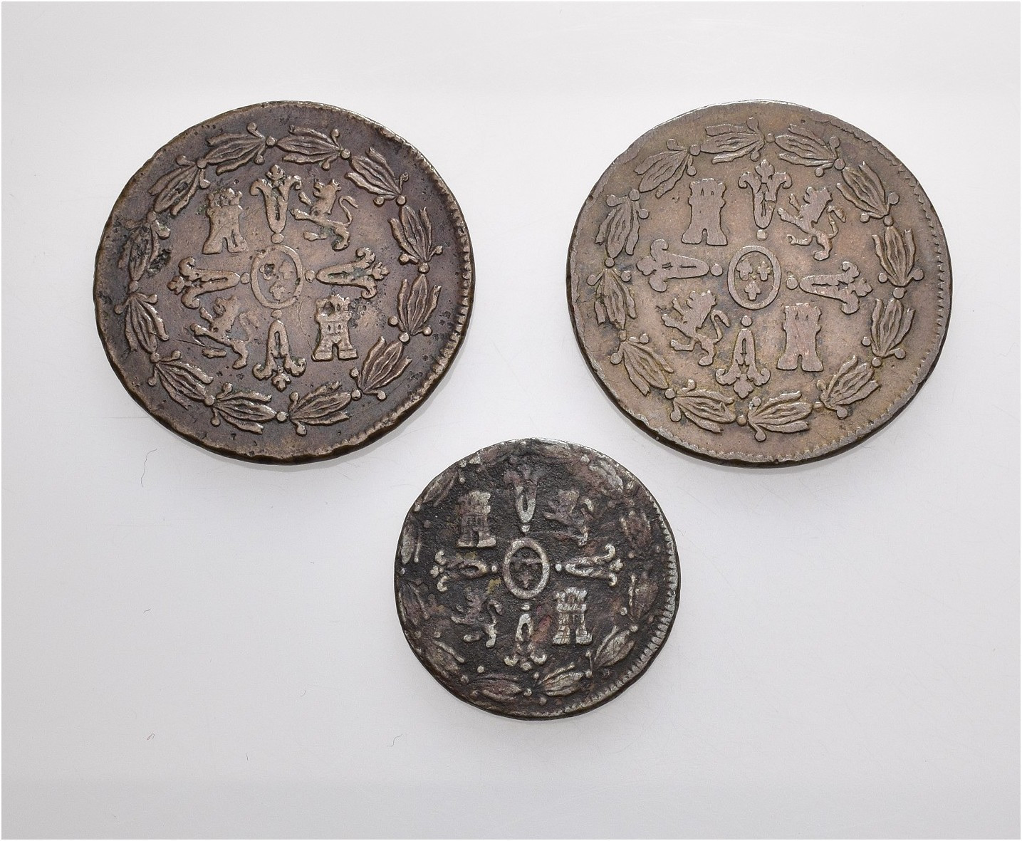 FERNANDO VII. Lote de 3 piezas de México: 1/4 1814; 2/4 1815 y 1816. MBC-.