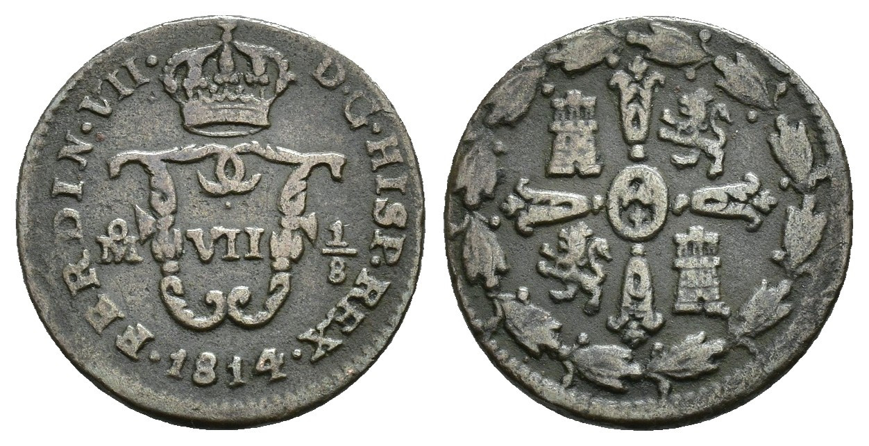FERNANDO VII. 1/8. 1814. México. CU 1,75 g. 16,9 mm. VI-72. MBC.