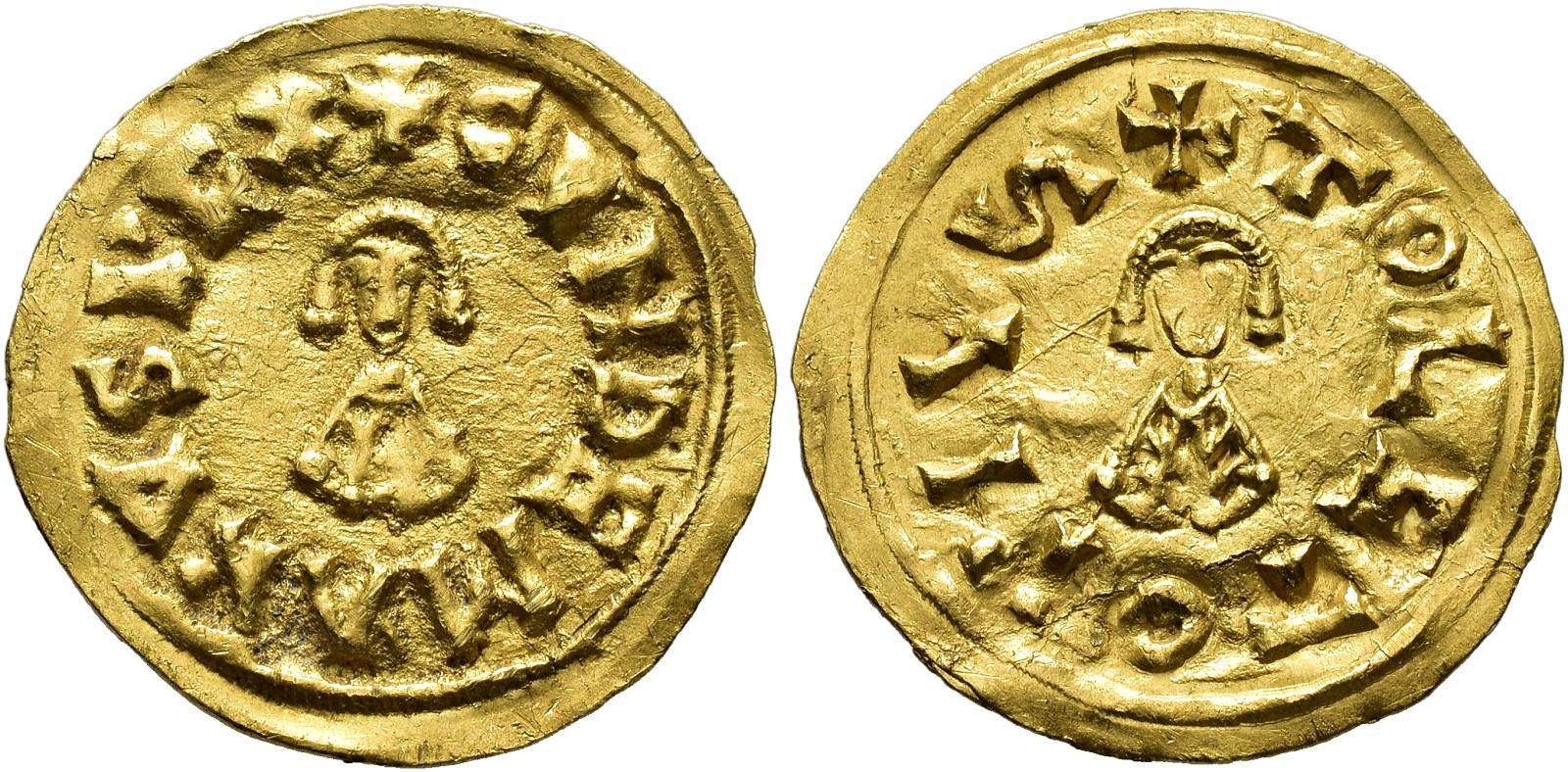 VISIGOTHIC KINGDOM. GUNDEMAR. Tremissis. Toleto. AU 1.38 g. 18.2 mm. CNV-192. Slightly warped. VF. Rare.