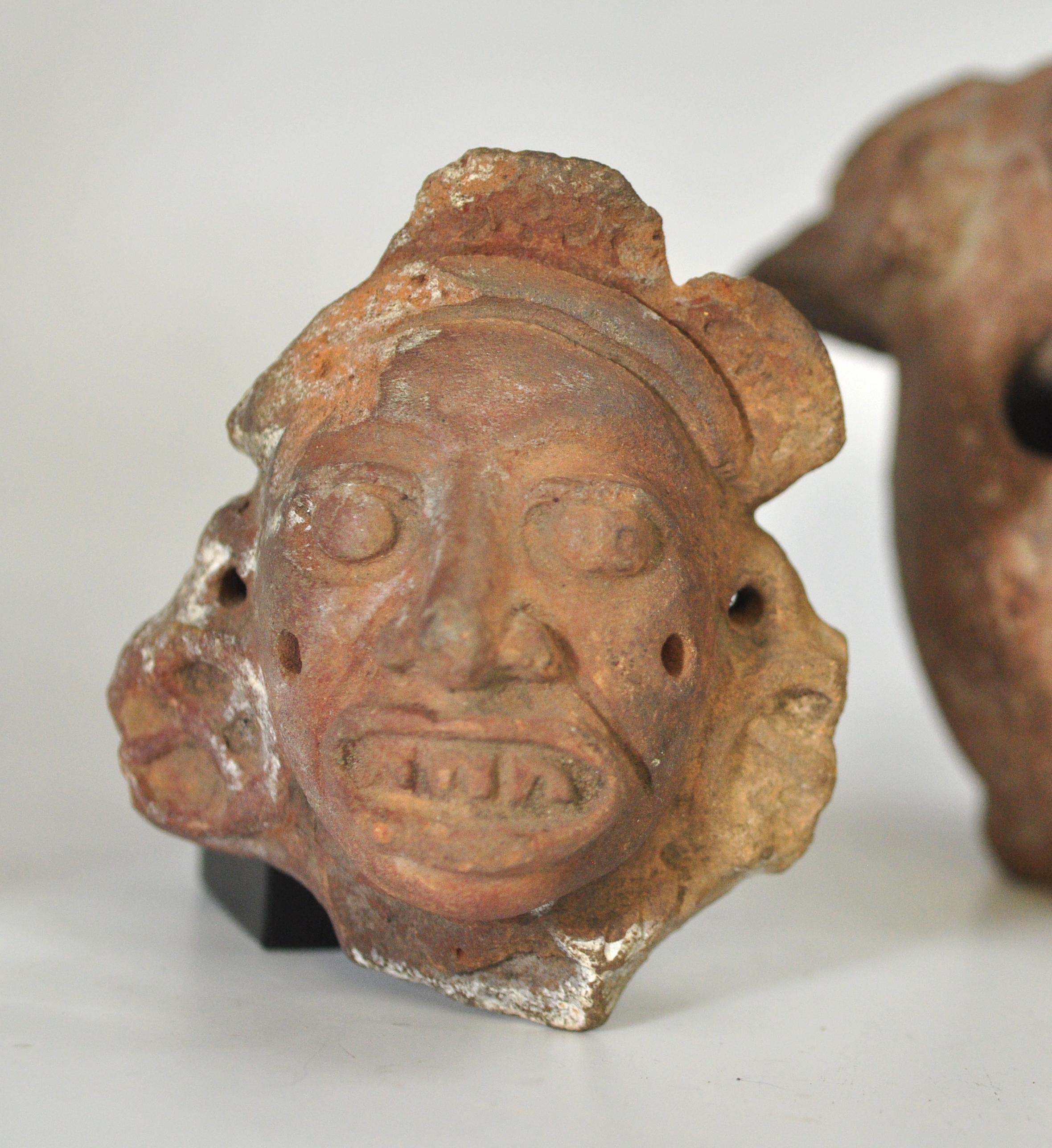 PREHISPÁNICO. Lote de 3 piezas de distintas épocas y culturas. Terracota. Dos de ellas son fragmentos de objetos más grandes. Longitud 9 cm a 14 cm.