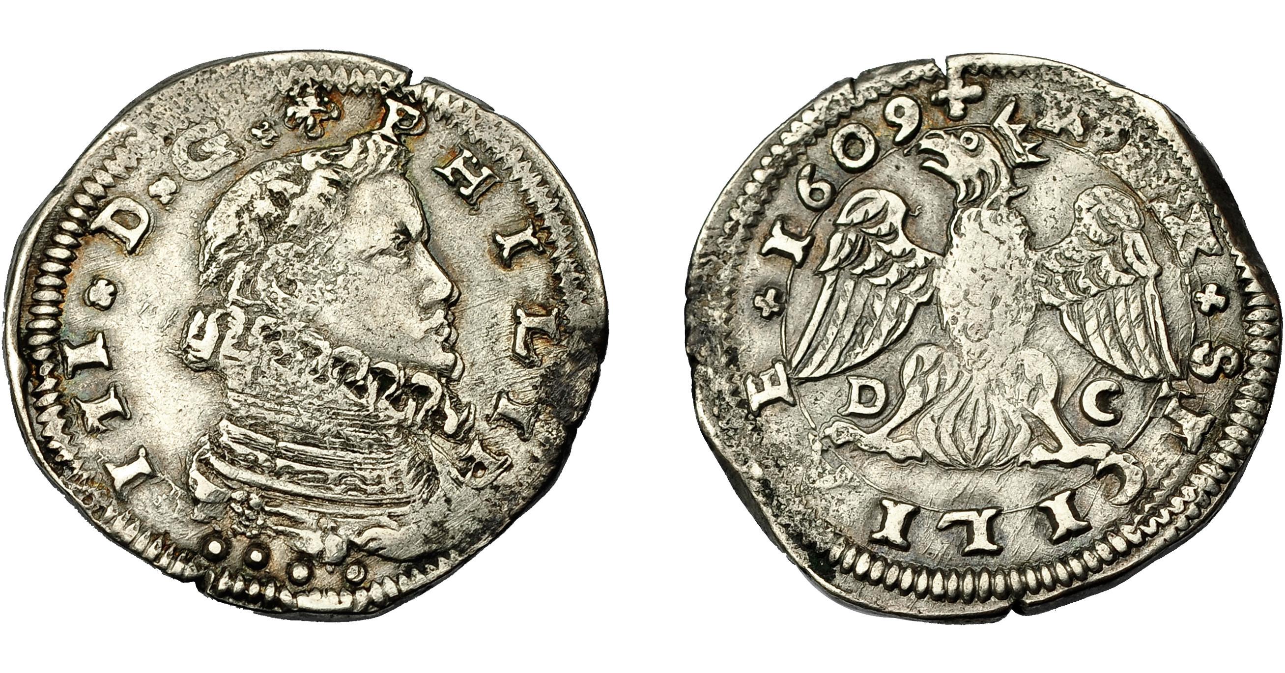FELIPE III. 4 tarí, 1609. Messina. DC. Spahr-64. Leves oxidaciones. MBC+.