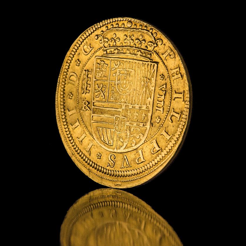 NumismáticaIn 1651 the Coining House of Segovia, also known as El Ingenio in Spanish, reopened after 11 years, coinciding with the need to re-mint all the fraudulent silver coming from Potosí. Under the direction of a new engraver, Alonso de Orozco, the mint issued coins in both 1651 and 1652. Merchants once again obtained licenses to bring their metals to the mint. Juan Cruz de Gainza, for instance, secured permits to mint cincuentines and doubloons of 8 escudos on May 16, 1651. It’s highly likely that some of the authorized gold coinage for 1651, including onzas and, theoretically, centenes with a total weight of 200 marks (although information about these is scarce) was actually minted in 1652. This assumption is based on the absence of records authorizing onza minting in the latter year. Moreover, it was common practice to extend minting permits to the following year if the authorized quantity wasn’t fully struck in the year of issuance. Therefore, we attribute these onzas to the 1651 license, although with the date of 1652 over 1651, as well as the BR mark of the new assayer, Bernardo de Pedrera, over the mark I of his predecessor, Hipólito de Santo Domingo, who assayed coins in 1651. This makes these coins exceedingly rare.