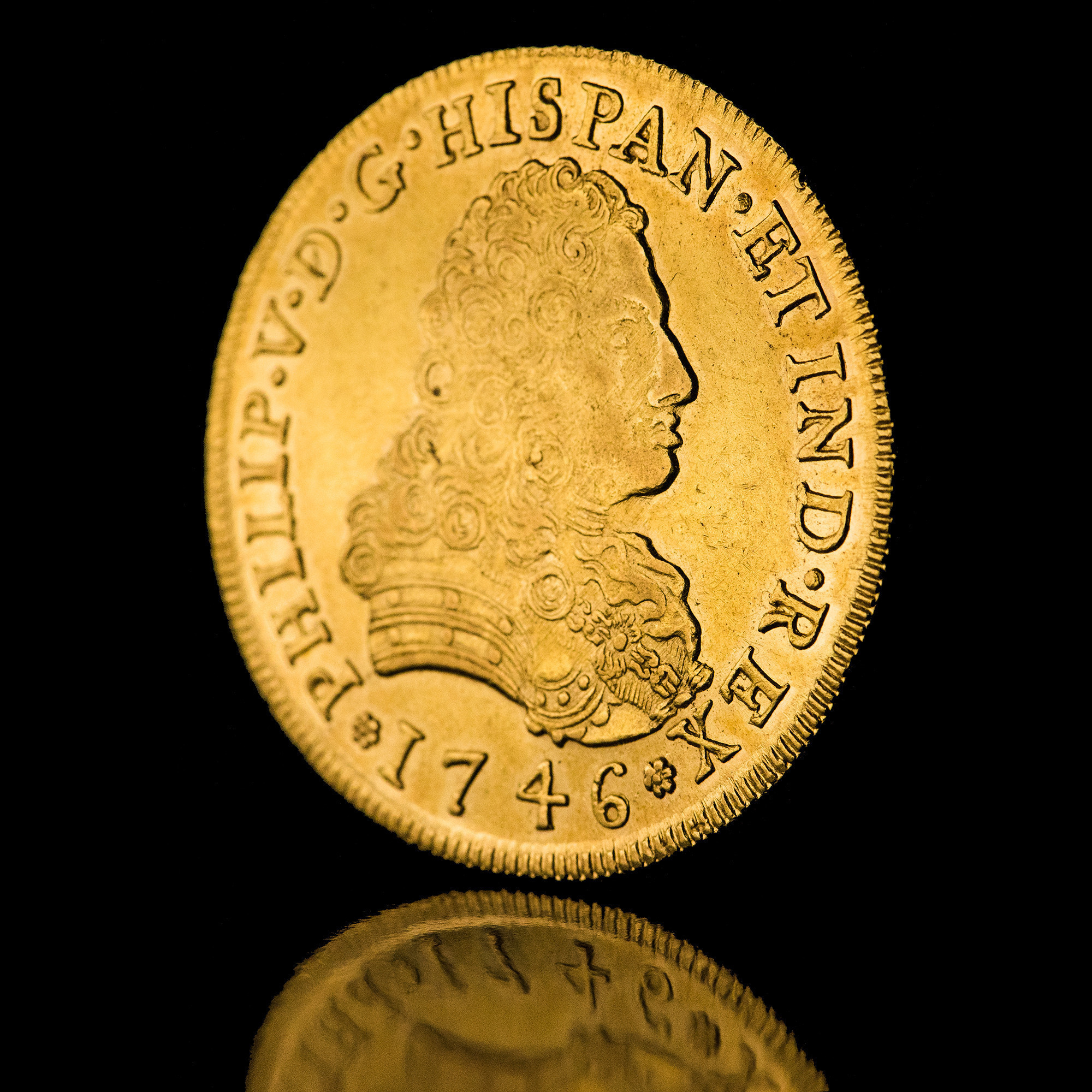 Los cambios técnicos y tipológicos de la ordenanza de 9 de junio de 1728 se empezaron a implementar en México en las piezas de 1732. En estos años la Nueva España vivió un gran desarrollo económico y demográfico, unido al cultural, con una gran difusión de la prensa, lo que convirtió el Virreinato en un verdadero emporio. A continuación, se ofrece una excepcional colección de onzas mexicanas de todos los años de este reinado de Felipe V, desde 1733 hasta 1747, ésta última acuñación póstuma, al haber muerto el rey en 1746. La pieza de 1733 está ensayada por F (1733) y el resto por MF, Manuel de León y Francisco Antonio de la Peña Flores.