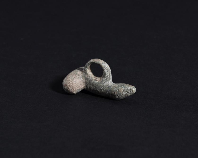 ARQUEOLOGÍA. ROMA. Amuleto fálico simple de perfil (ss. I-IV d.C.). Bronce. Longitud 4,5 cm.