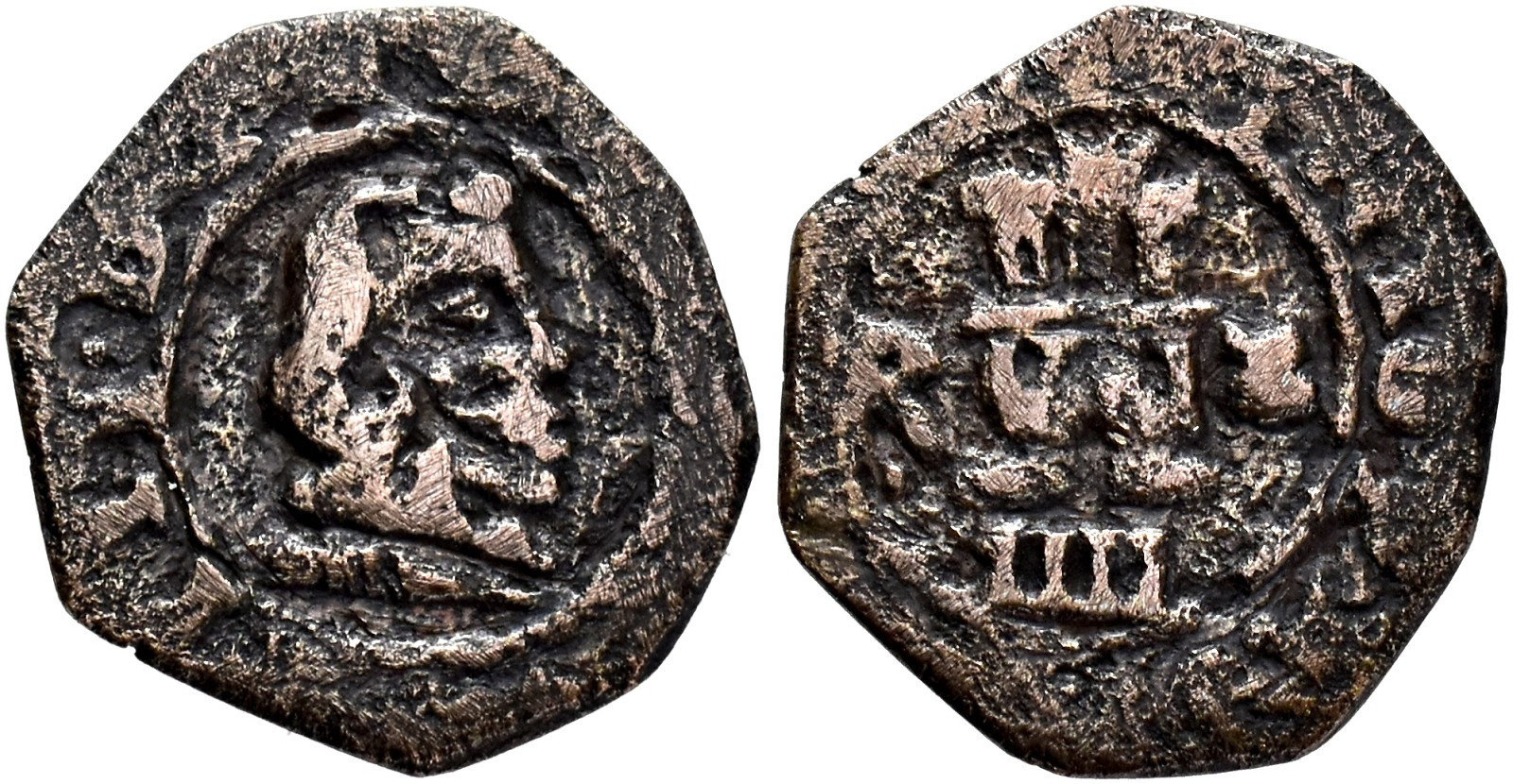 FELIPE IV.4 maravedís. (1661). Coruña. R. Acuñación a martillo. CU 0,7 g. 14,2 mm. RS-166; JS-M171; Orol-MO.414. MBC-. Rara.