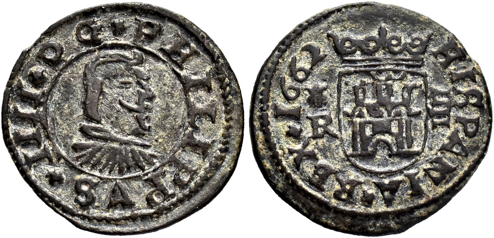 FELIPE IV. 4 maravedís. 1662. Coruña. R. CU 1,18 g. 17,6 mm. RS-168. Orol-MO.625. MBC+.