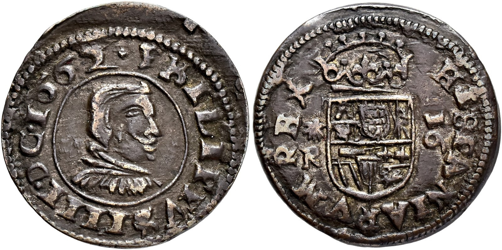 FELIPE IV. 16 maravedís. 1662. Coruña. R. Fecha en anv. CU 4,2 g. 25,7 mm. RS-128; Orol-MO.429 MBC/MBC+.