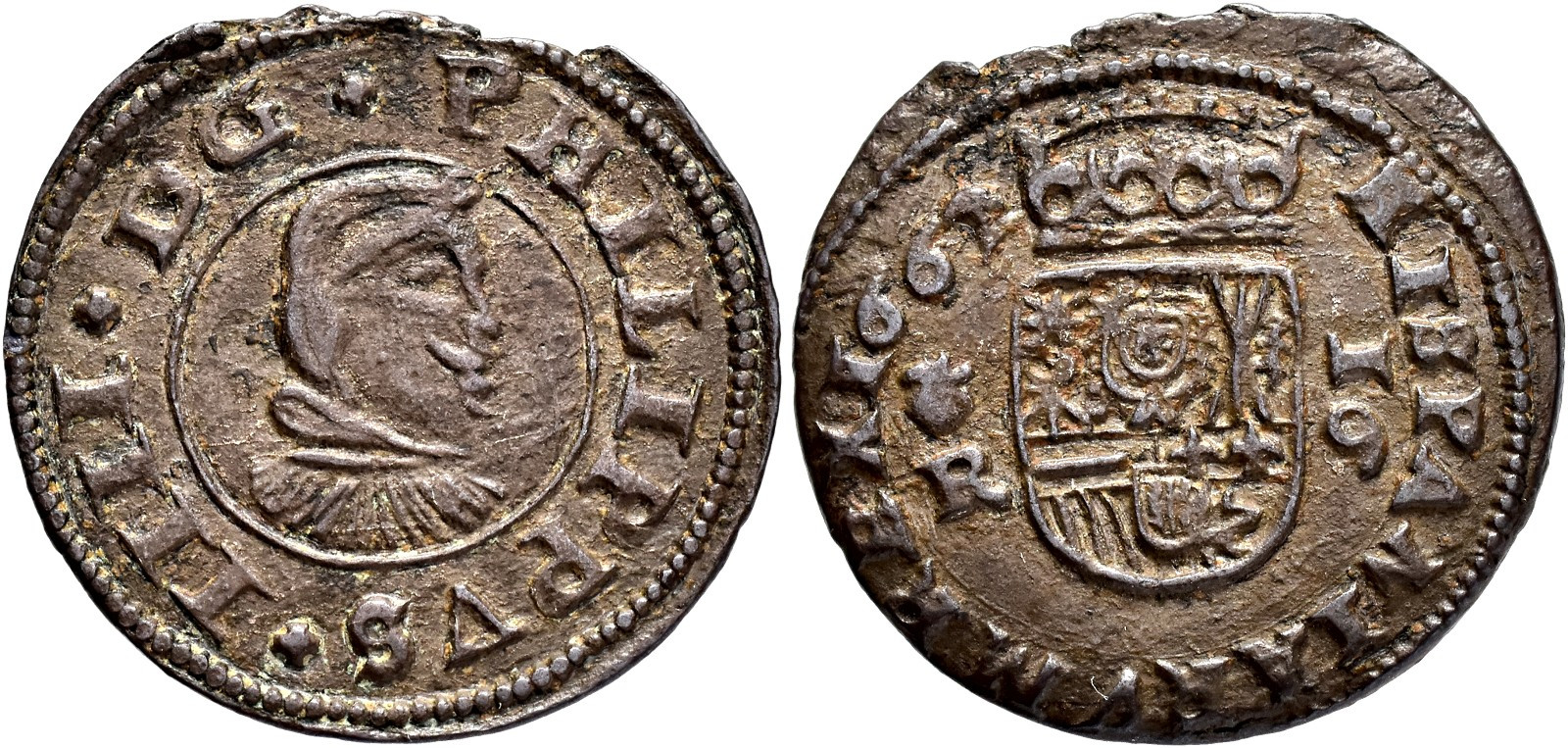FELIPE IV. 16 maravedís. 1662. Coruña. R. CU 3,4 g. 25,2 mm. RS-132; Orol-MO.440 Final de plancha. MBC+.